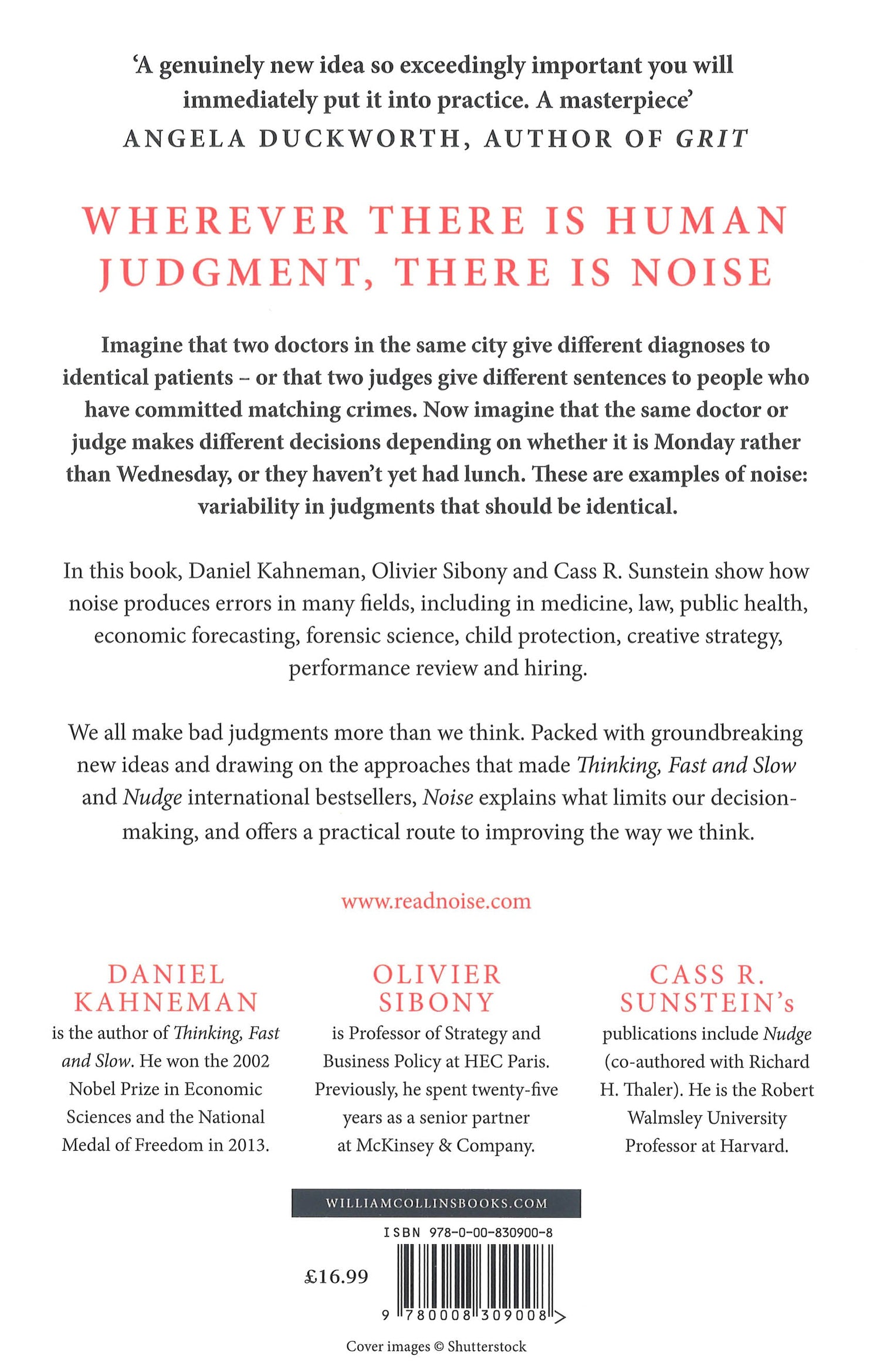 From the multi-million copy bestselling author of Thinking Fast and Slow Daniel Kahneman, the co-author of the million-copy bestseller Nudge Cass Sunstein, and the eminent professor and writer on strategic thinking Olivier Sibony, a new book about how to make better decisions. We make thousands of decisions every day, from minute choices we don't even know we're making up to great, agonising deliberations. But when every decision we make is life-changing, the way we reach them matters. And for every decision, there is noise. This book teaches us how to understand all the extraneous factors that impact and bias our decision-making - and how to combat them and improve our thinking. Filled with new science, fascinating case studies and revealing practical examples, the skills this book teaches can be readily used by private or public institutions, by schools, hospitals, businesses, judges and in our everyday lives.