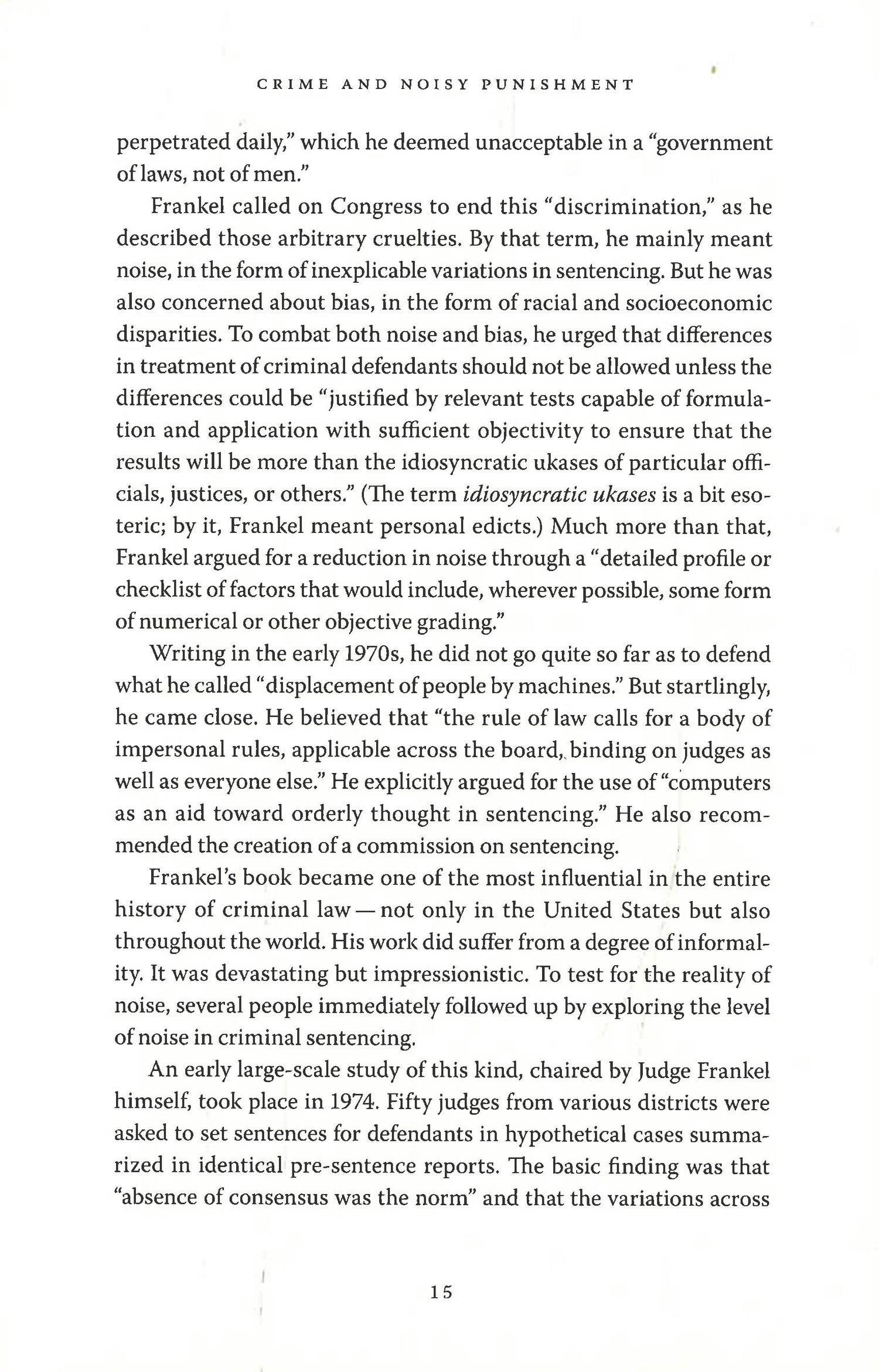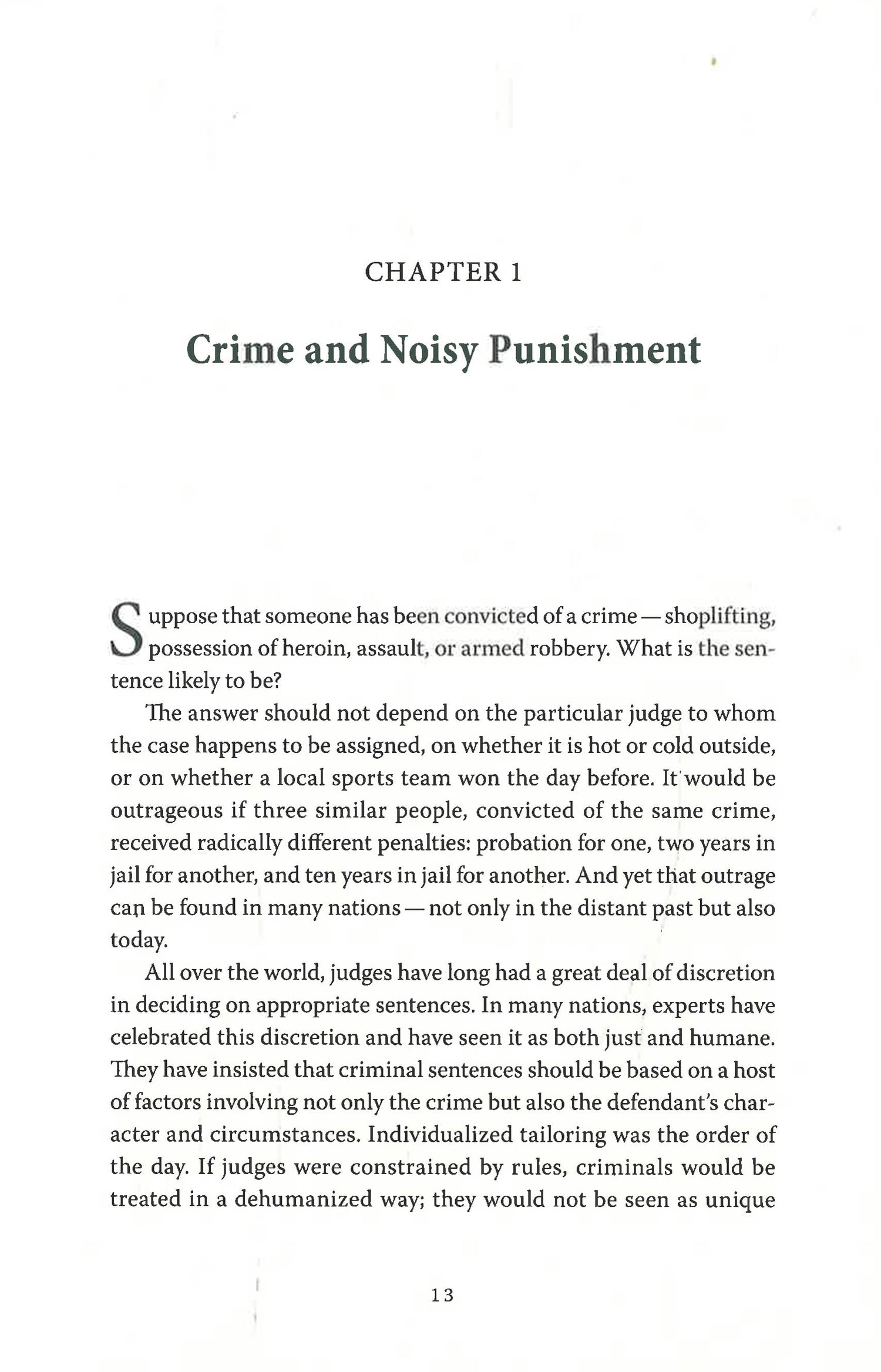 Imagine that two doctors in the same city give different diagnoses to identical patients—or that two judges in the same courthouse give markedly different sentences to people who have committed the same crime. Suppose that different interviewers at the same firm make different decisions about indistinguishable job applicants—or that when a company is handling customer complaints, the resolution depends on who happens to answer the phone. Now imagine that the same doctor, the same judge, the same interviewer, or the same customer service agent makes different decisions depending on whether it is morning or afternoon, or Monday rather than Wednesday. These are examples of noise: variability in judgments that should be identical.