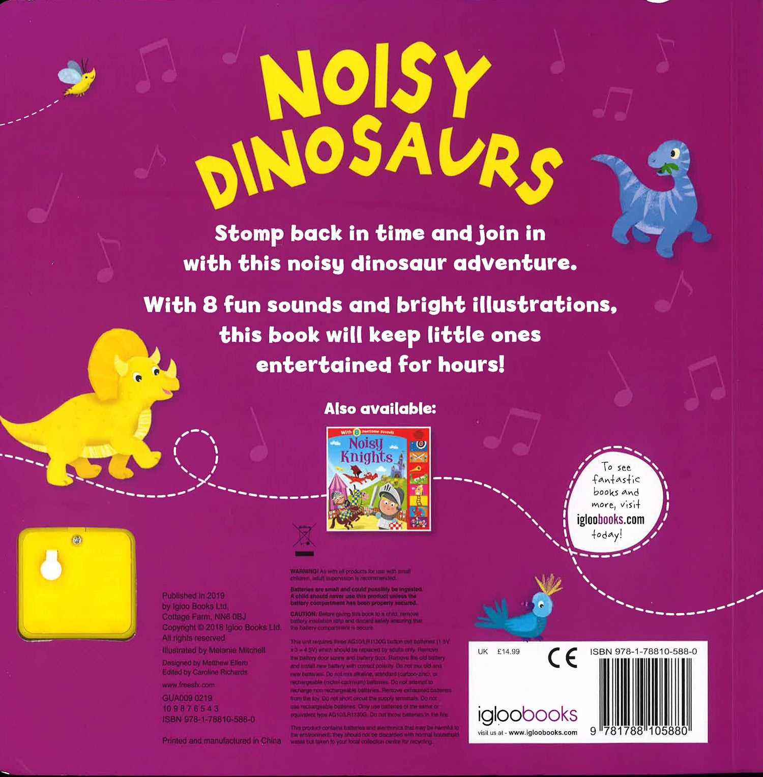 Stomp back in time and join in with this nosiy adventure. 8 sounds and bright illustrations, this book will keep little ones entertained for hours.