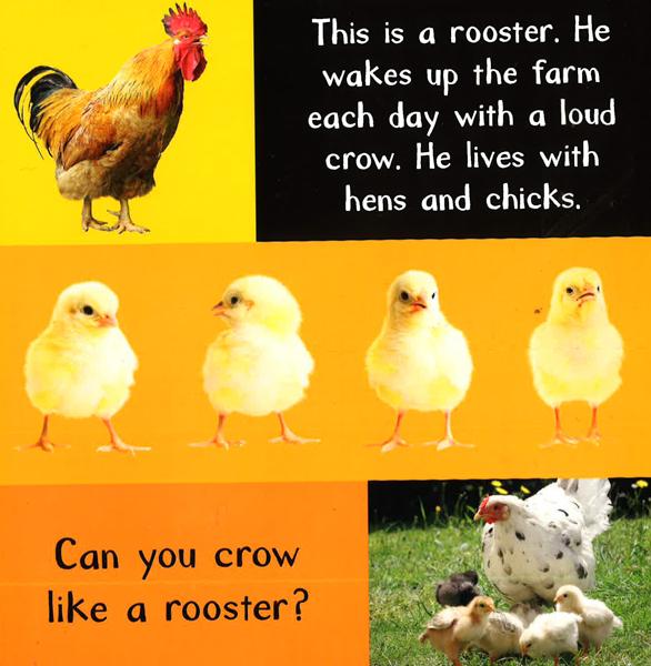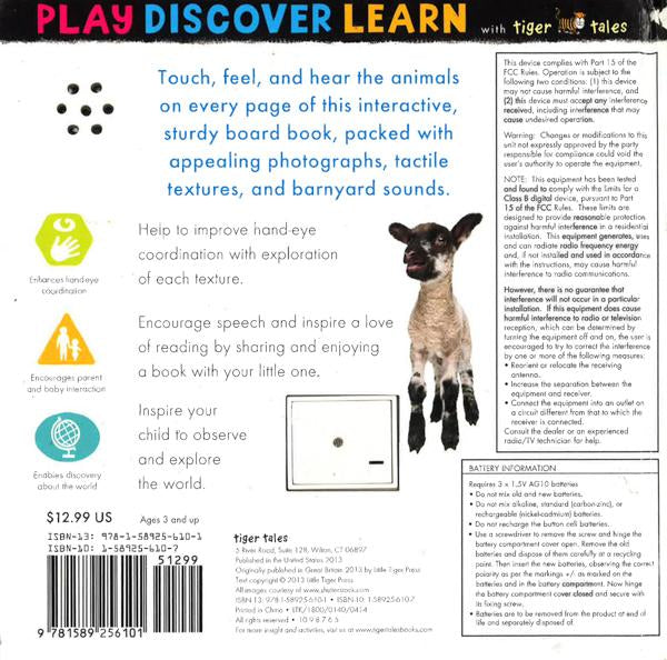 Touch, feel and hear the animals on every page of this sturdy board book which features engaging photographs and appealing textures that encourage young readers to explore the exciting world of farm animals.