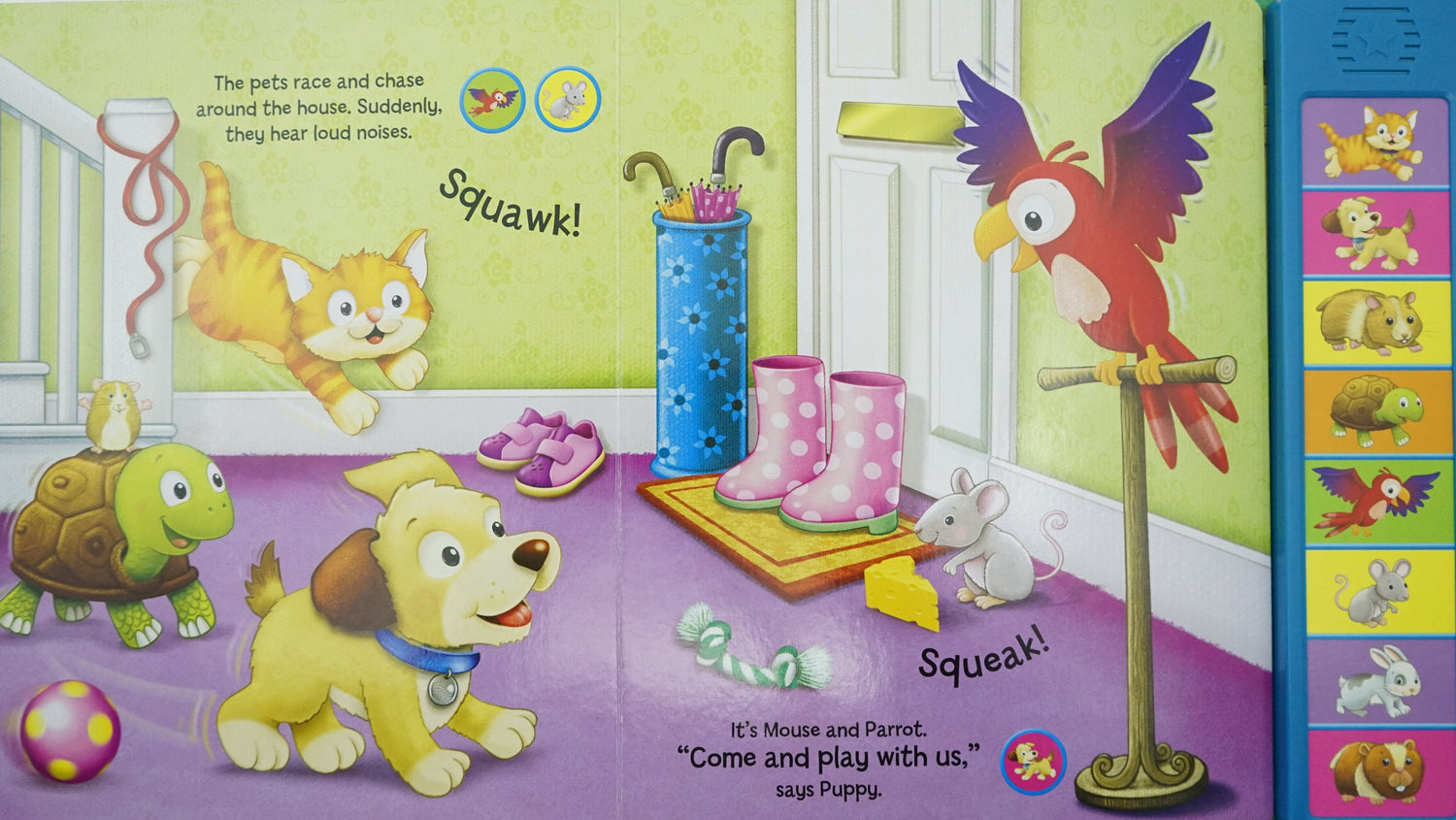 Kitty and Puppy want to play a game! Join the fun with the cute pets as they race and chase around the house. With 8 brilliant sounds that bring the action to life, children will love this fantastic storybook.