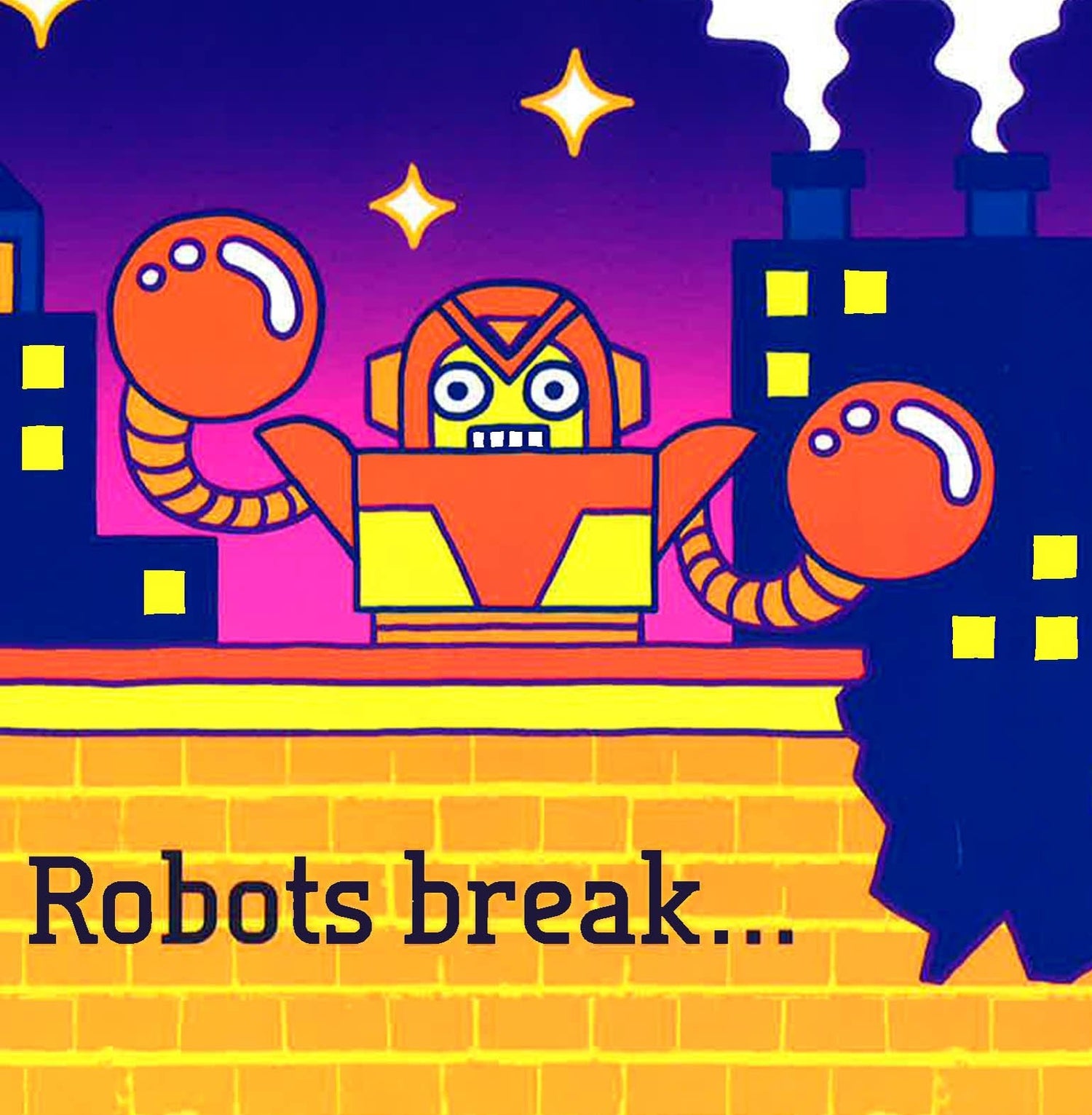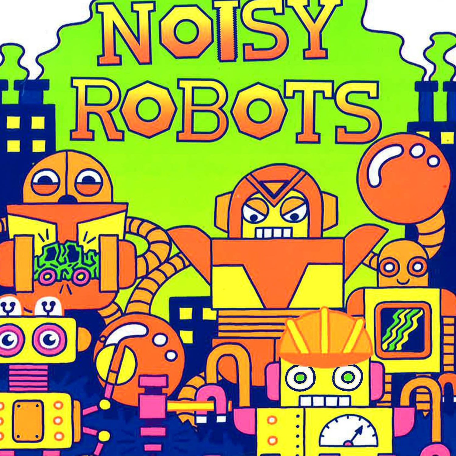 A unique board book with bright, fluorescent images of all sorts of robots! These robots make a lot of noise as they build, fix, break, and more! The scenes are accompanied by simple, descriptive phrases on each page. With bright, fluorescent colors, this book is sure to catch children's and parents' eyes!