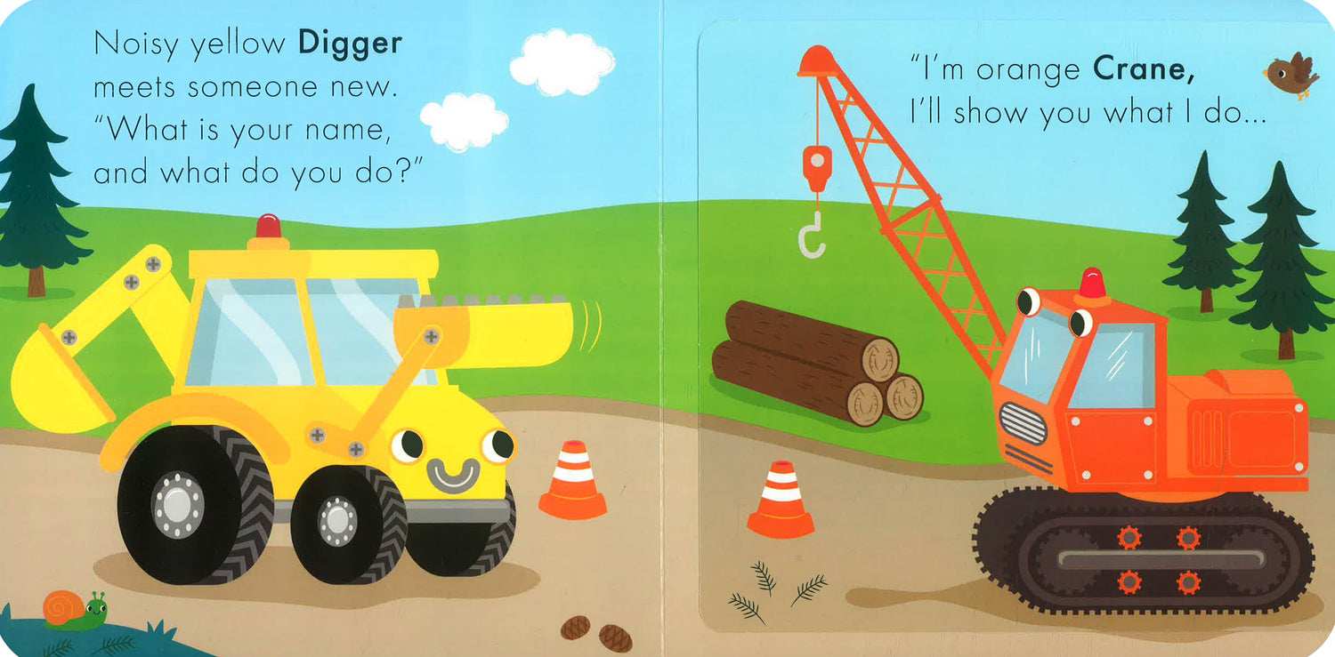 Join Yellow Digger on a rhyming tour of the construction site with noises, flaps and actions to copy on every page.