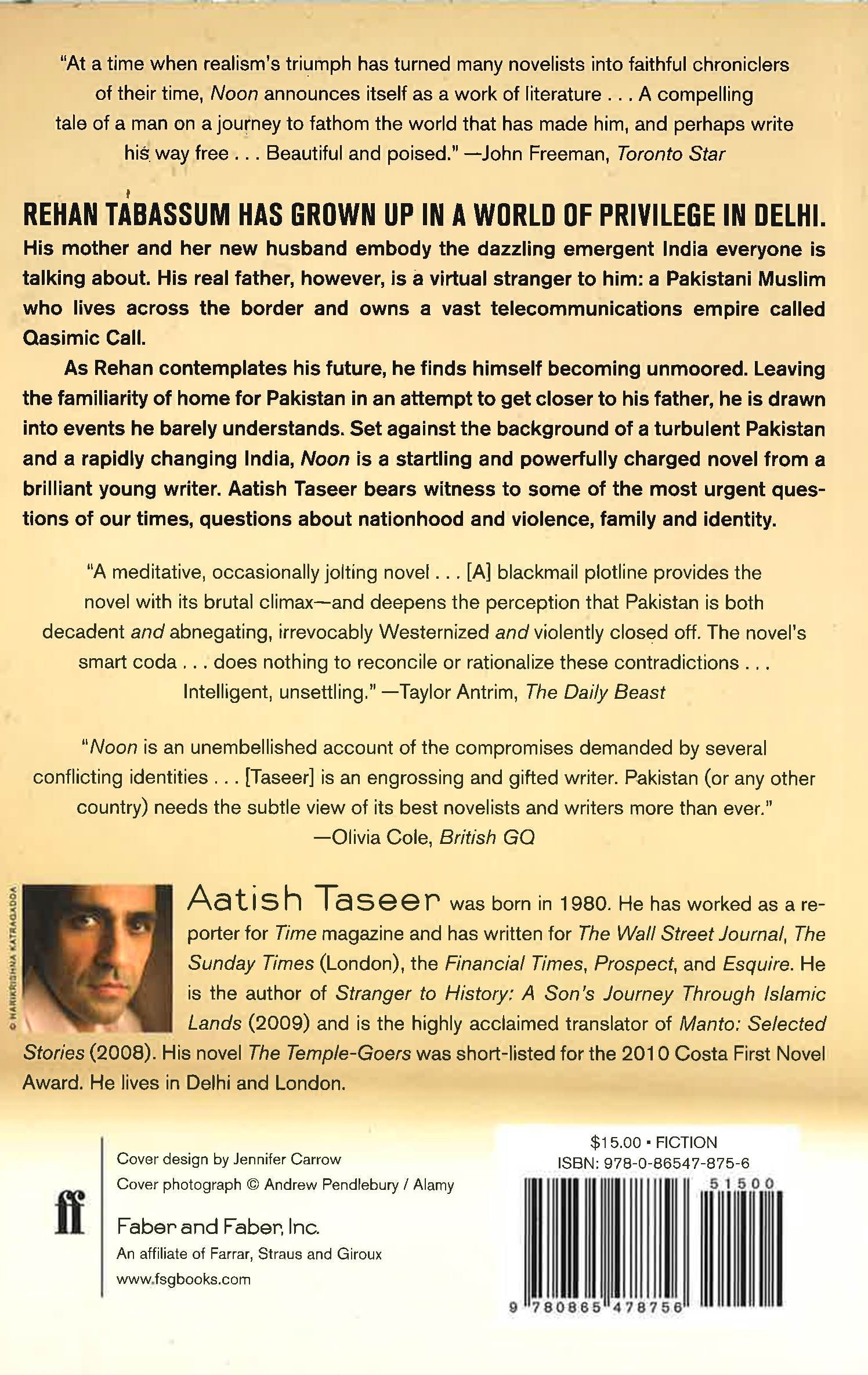 Set against the background of a turbulent Pakistan and a rapidly changing India, Noon is a startling and powerfully charged novel from a brilliant young writer. Aatish Taseer bears witness to some of the most urgent questions of our times, questions about nationhood and violence, family and identity