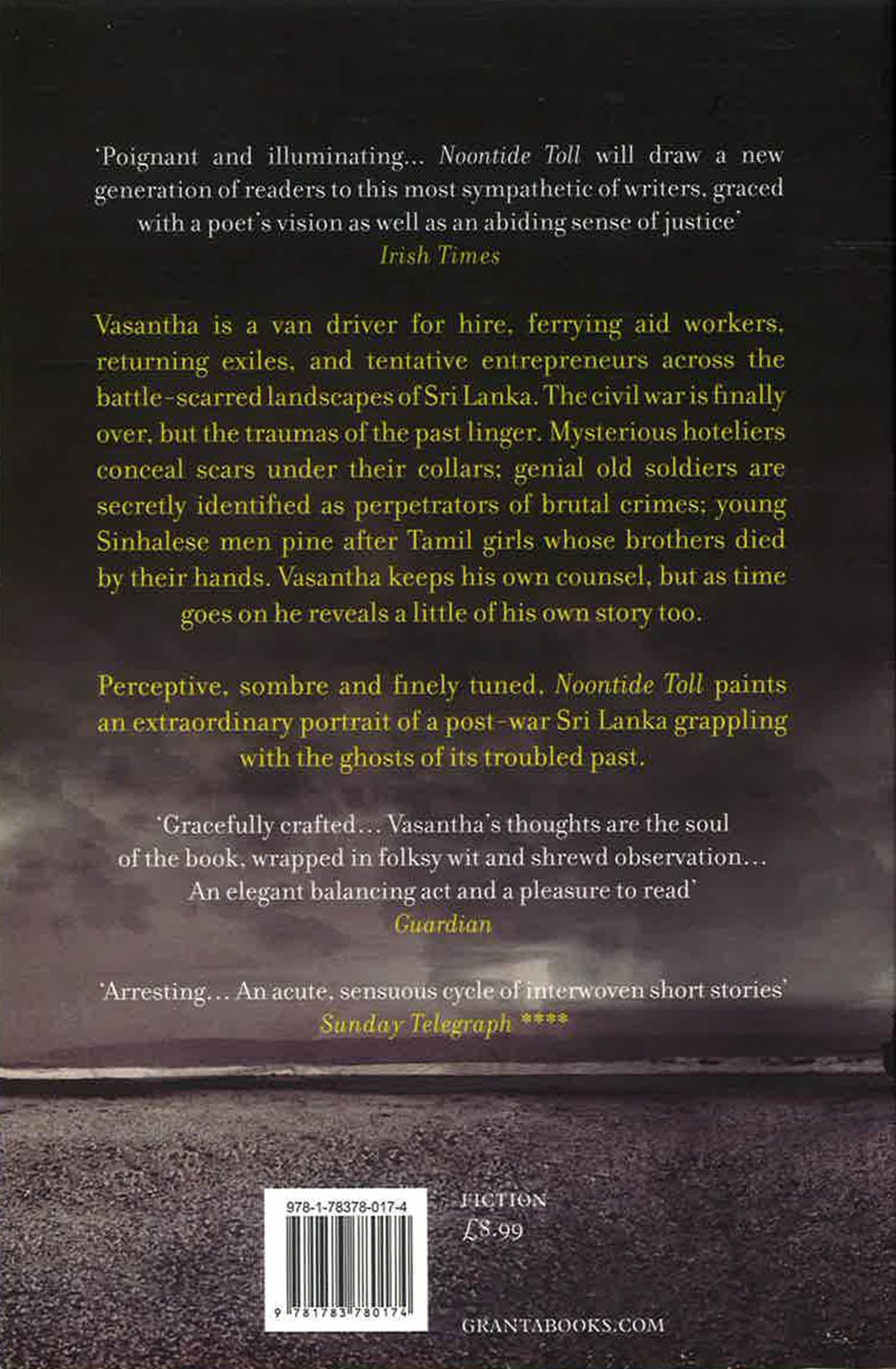 Vasantha is a van driver for hire, ferrying aid workers, returning exiles, and tentative entrepreneurs across the battle-scarred landscapes of Sri Lanka. The civil war is finally over, but the traumas of the past are still haunting. Behind the facade of peace we are made to remember the mysterious hoteliers conceal scars under their collars; genial old soldiers are secretly identified as perpetrators of brutal crimes; young Sinhalese men pine after Tamil girls whose brothers died by their hands. Vasantha keeps his own counsel, lingering on the periphery of his passengers' stories, but as time goes on he reveals a little of his own story too. Perceptive, sombre and finely-tuned, Noontide Toll paints an extraordinary portrait of a post-war Sri Lanka grappling with the ghosts of its troubled past.