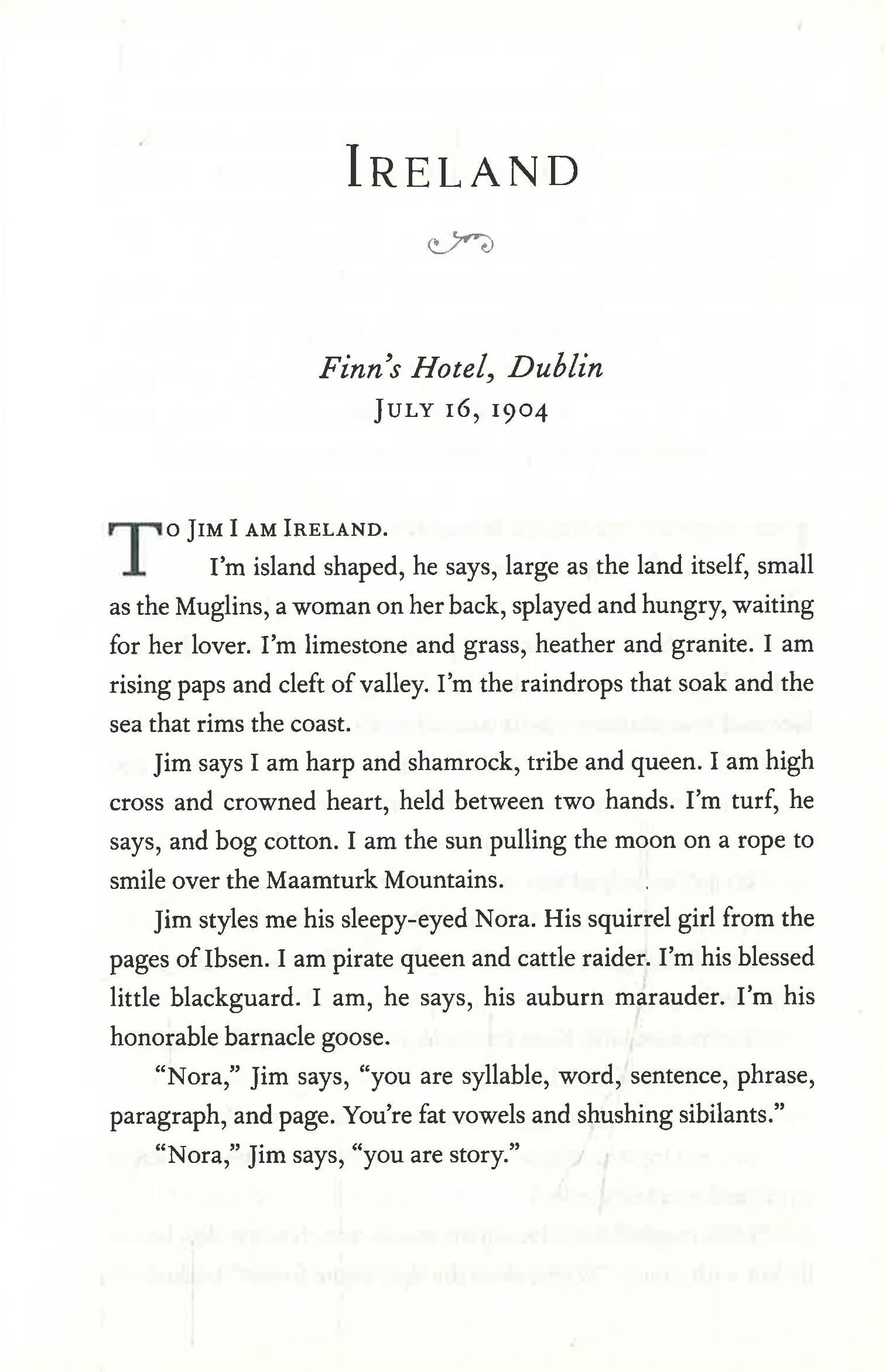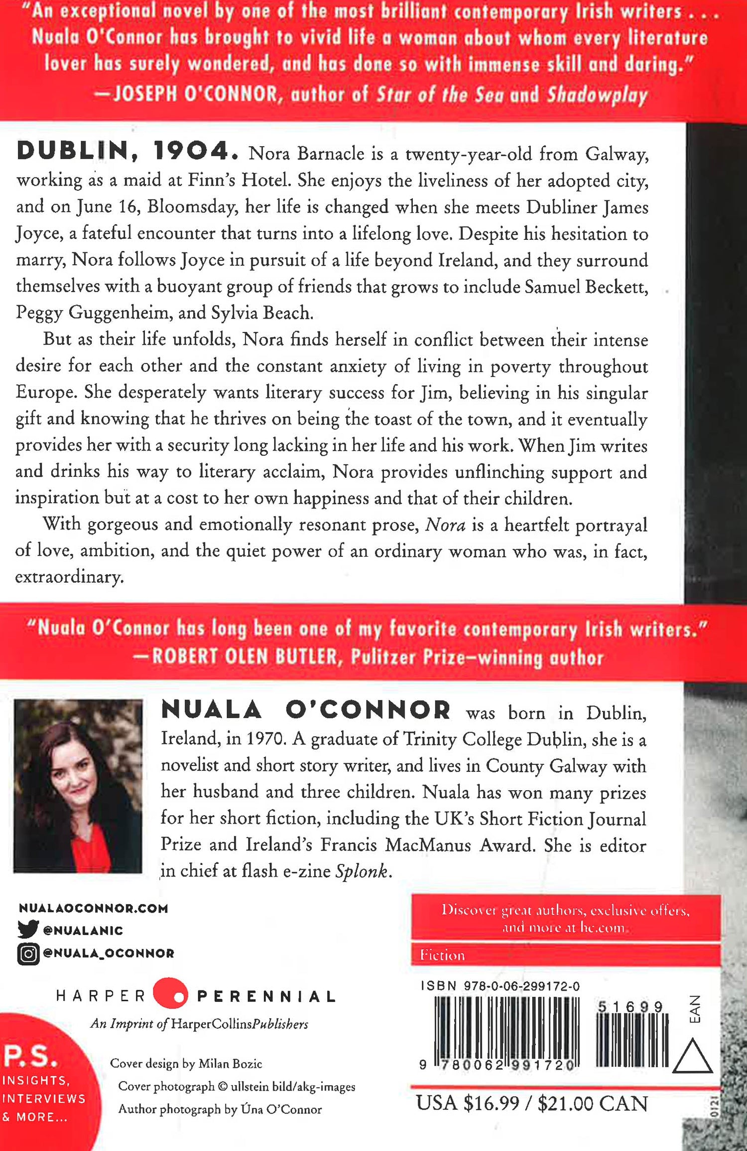 Dublin, 1904. Nora Joseph Barnacle is a twenty-year-old from Galway working as a maid at Finn’s Hotel. She enjoys the liveliness of her adopted city and on June 16—Bloomsday—her life is changed when she meets Dubliner James Joyce, a fateful encounter that turns into a lifelong love. Despite his hesitation to marry, Nora follows Joyce in pursuit of a life beyond Ireland, and they surround themselves with a buoyant group of friends that grows to include Samuel Beckett, Peggy Guggenheim, and Sylvia Beach.