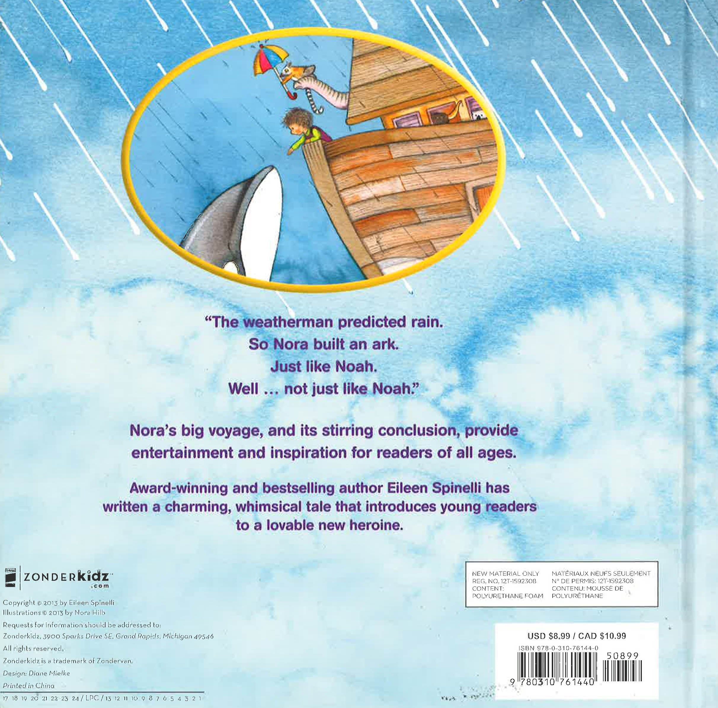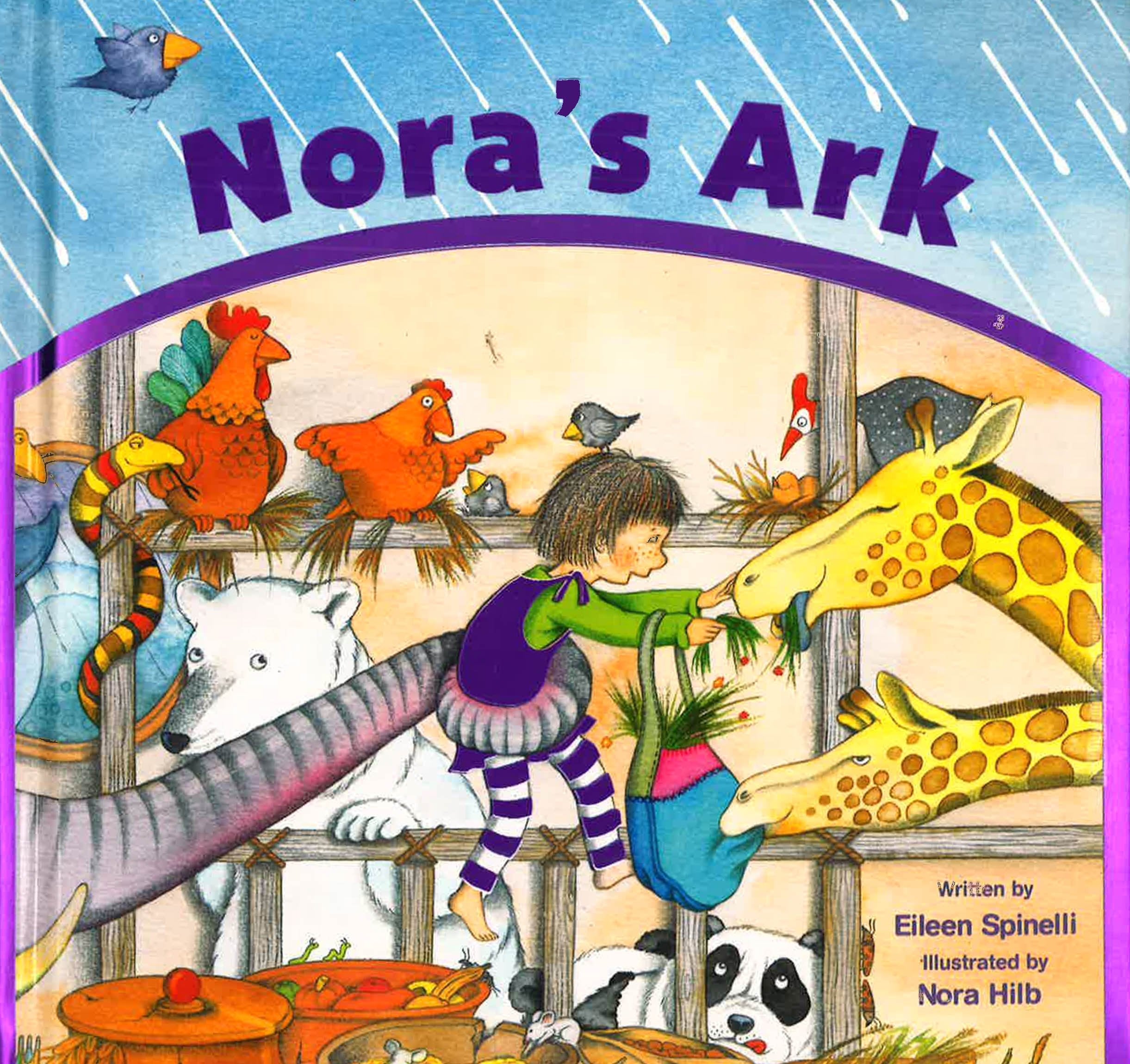 The weatherman predicted rain. So Nora built an ark. Just like Noah. Well ... not just like Noah. He used wood. Nora used a broken attic chair, some dusty boxes, and three old fence slats. And so the story goes as Nora uses her imagination and real-life objects found in her home to follow in Noah's footsteps. Eileen Spinelli's Nora's Ark is a charming, whimsical padded cover board book that introduces young readers to a lovable new heroine. With a metallic cover that shimmers and shines, little ones will fall in love with Nora and her adventures.