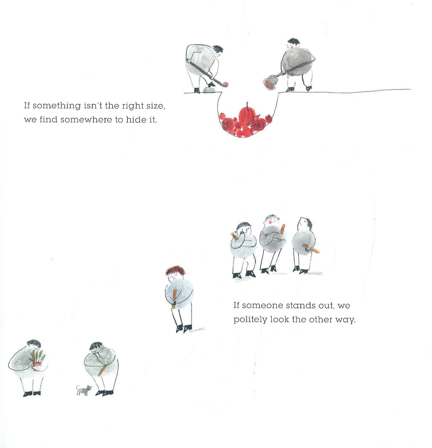 Norm looks exactly the way a normal person looks. For a long time, he thought the way he lived was best. But then a golden bird took him beyond his village where he discovered a world that was completely unruly. At first, he was afraid. But thanks to his new friend, Red, Norm discovered the immeasurable freedom in letting go of the rules.