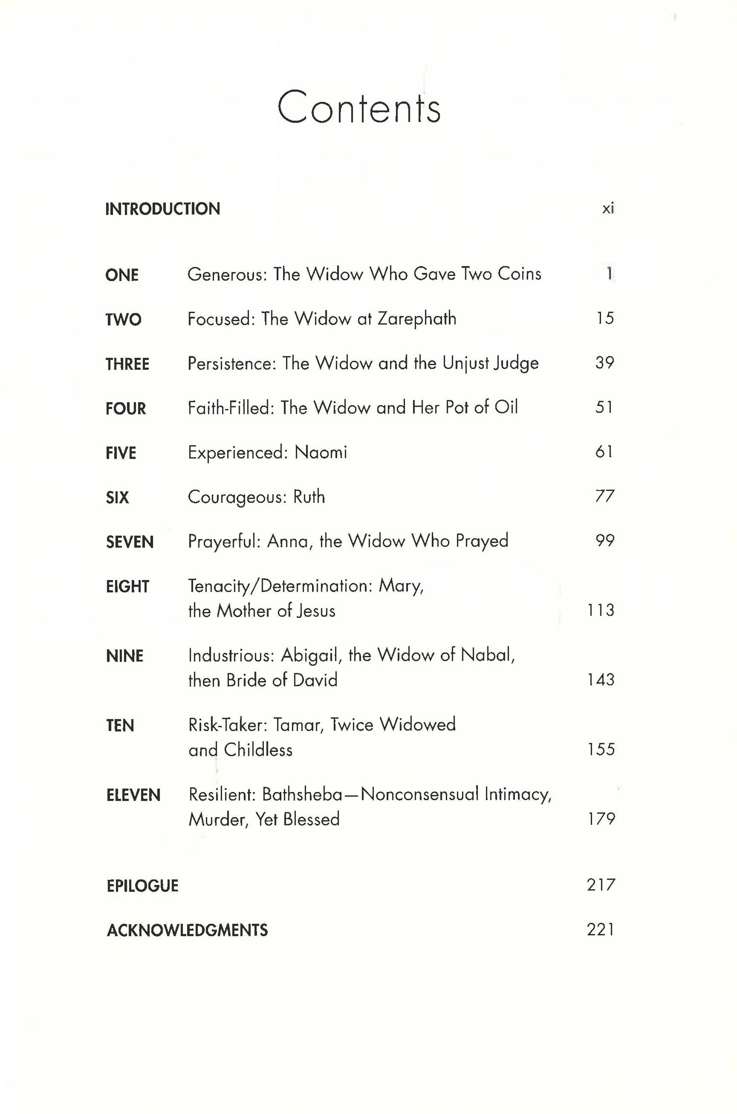 These artfully retold stories take us into the heartbreak of loss and struggles with fate. Not for widows only, these stories inspire and empower us. As the widows rise in hope, we rise with them. Even if you are one who has experienced any kind of loss, these stories will strengthen your faith and shine a light into darkness.