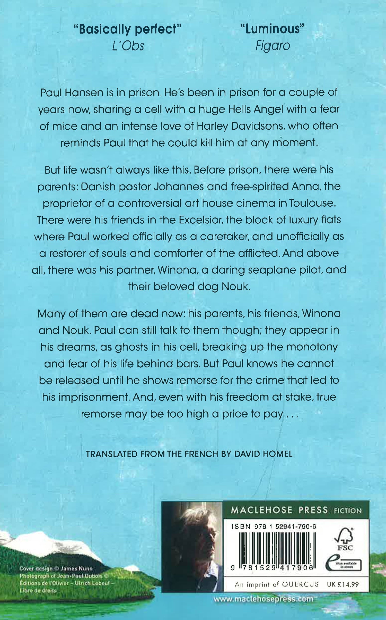 Paul Hansen is in prison. He's been in prison for a couple of years now, sharing a cell with a huge Hells Angel with a fear of mice and an intense love of Harley Davidsons, who often reminds Paul that he could kill him at any moment. But life wasn't always like this. Before prison, there were his parents: Danish pastor Johannes and free-spirited Anna, the proprietor of a controversial art house cinema in Toulouse. There were his friends in the Excelsior, the block of luxury flats where Paul worked officially as a caretaker, and unofficially as a restorer of souls. And above all, there was his partner, Winona, a daring seaplane pilot, and their beloved dog Nouk. Many of them are dead now: his parents, his friends, Winona and Nouk. Paul can still talk to them though; they appear in his dreams, as ghosts in his cell, breaking up the monotony and fear of his life behind bars. But Paul knows he cannot be released until he shows remorse for the crime that led to his imprisonment. And, even with his freedom at stake, for some things, true remorse is too high a price to pay. . . Translated from the French by David Homel