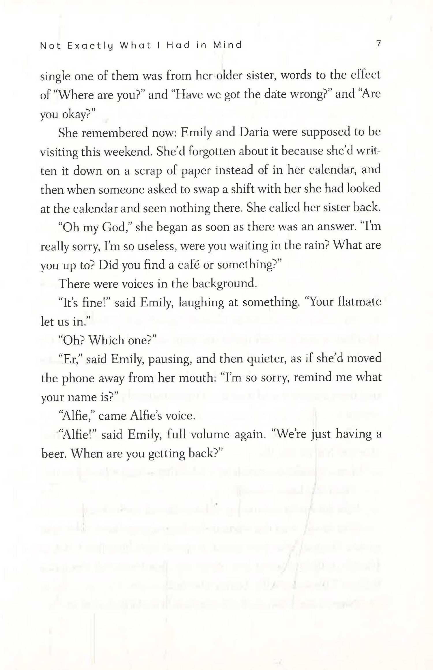 As the lives of Hazel, Alfie, Emily, and Daria collide, a complicated chain of events begins to bind them all together, bringing joy and heartache, hope and anxiety, and reshaping their relationships in ways that no one quite predicted. Warm, clever, and devastatingly relatable, Not Exactly What I Had in Mind is by turns funny, heartbreaking, and a painfully true-to-life story about family, friends, and everything in between.