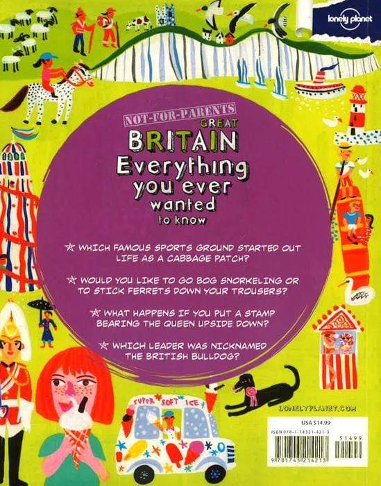 Lonely Planet: The world's leading travel guide publisher* This is not a guidebook. And it is definitely 'not-for-parents'. It is the real, inside story about one of the world's most exciting places - Great Britain. In this book you'll hear fascinating tales about kids down the mines, battles on the football field, secret stones and kings and queens galore. Check out cool stories about a famous spy, an underwater monster, a flying scotsman and a flying great grandmother. You'll find hats and bats, crazy laws, royal limos and some amazing legends. Authors: Written and researched by Lonely Planet, Klay Lamprell About Lonely Planet: Started in 1973, Lonely Planet has become the world's leading travel guide publisher with guidebooks to every destination on the planet, as well as an award-winning website, a suite of mobile and digital travel products, children's books, and a dedicated traveller community. Lonely Planet's mission is to enable curious travellers to experience the world and to truly get to the heart of the places where they travel. TripAdvisor Travellers' Choice Awards 2012 and 2013 winner in Favorite Travel Guide category 'Lonely Planet guides are, quite simply, like no other.' - New York Times 'Lonely Planet. It's on everyone's bookshelves; it's in every traveller's hands. It's on mobile phones. It's on the Internet. It's everywhere, and it's telling entire generations of people how to travel the world.' - Fairfax Media (Australia) *#1 in the world market share - source: Nielsen Bookscan. Australia, UK and USA. March 2012-January 2013