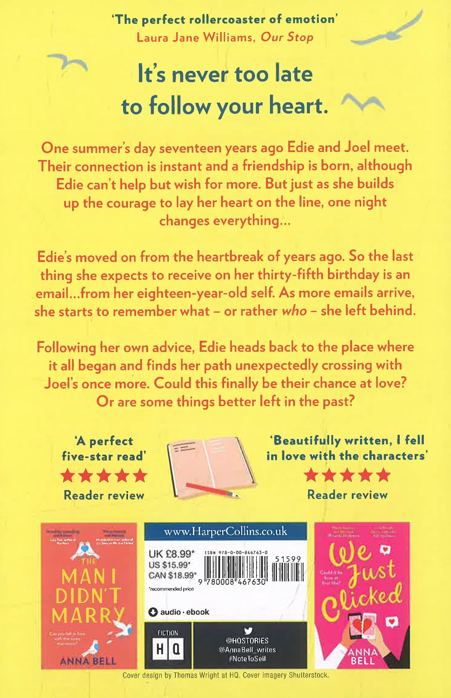 Edie’s moved on from the heartbreak of years ago. So the last thing she expects to receive on her thirty-fifth birthday is an email… from her eighteen-year-old self. As more emails arrive, she starts to remember what – or rather who – she left behind.