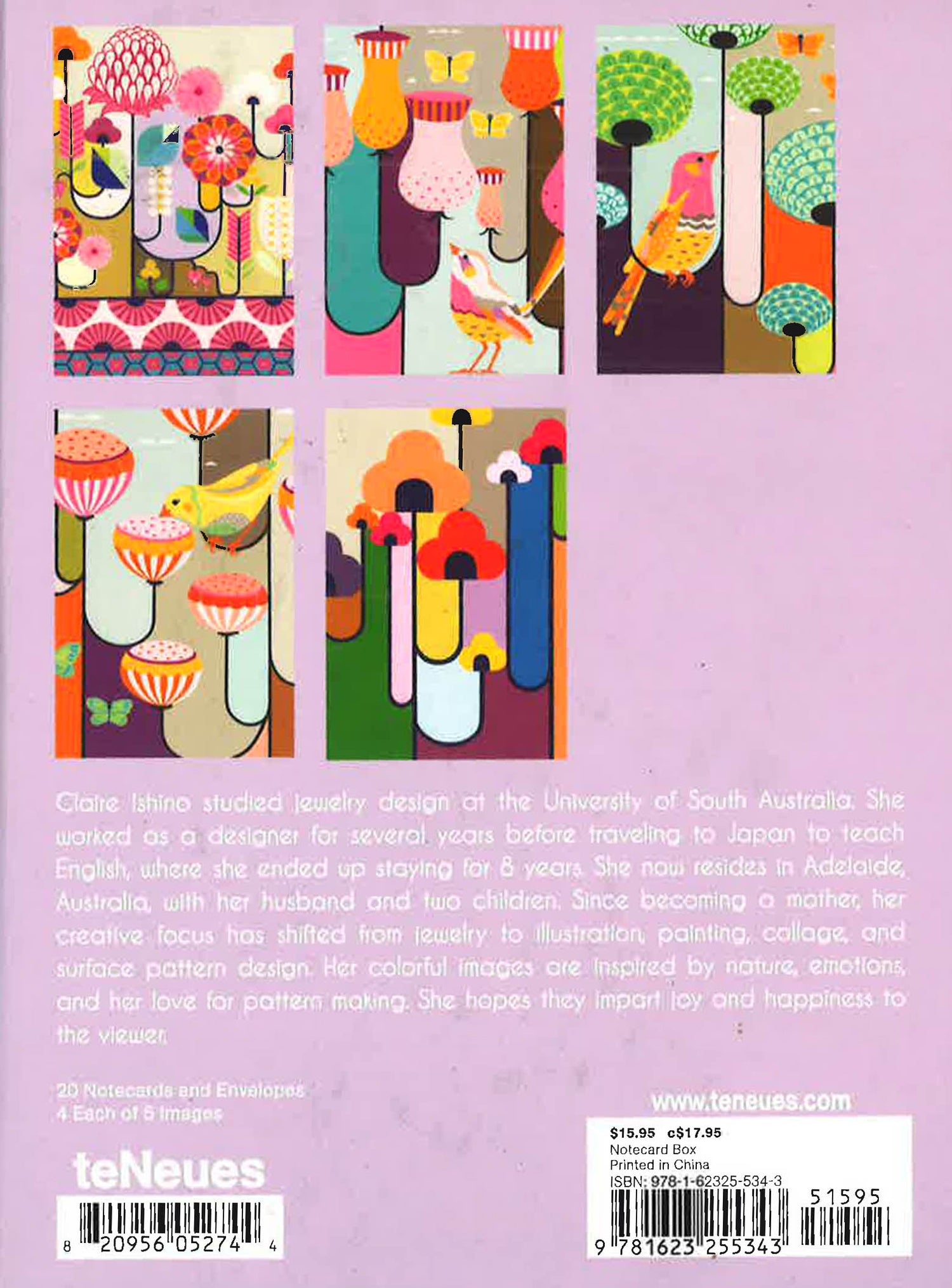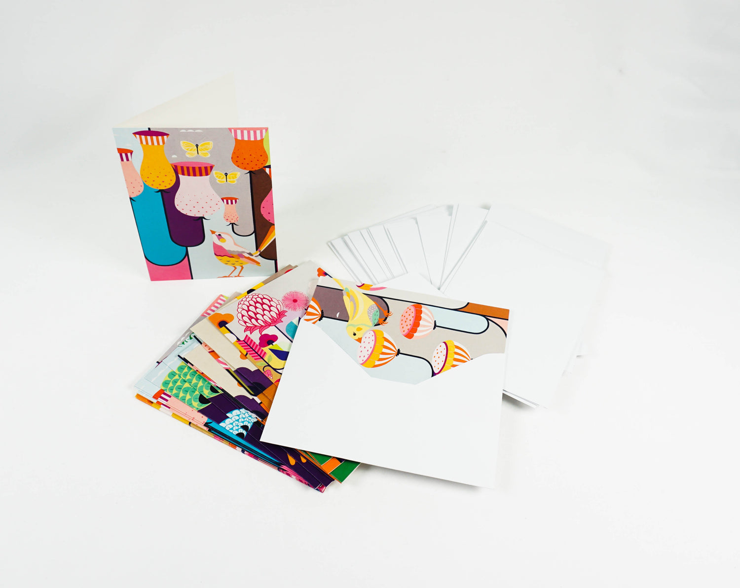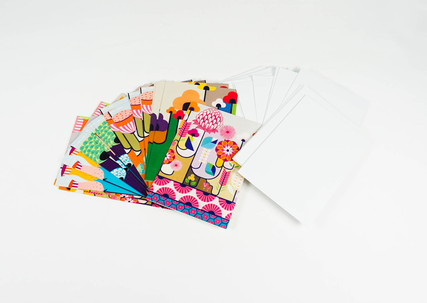 The perfect gift for garden lovers, this boxed notecard collection features colorful flowers and bird illustrations in a striking contemporary style. 20 notecards, 4 each of 5 images. 20 envelopes. Sturdy, reusable box, great for storage.