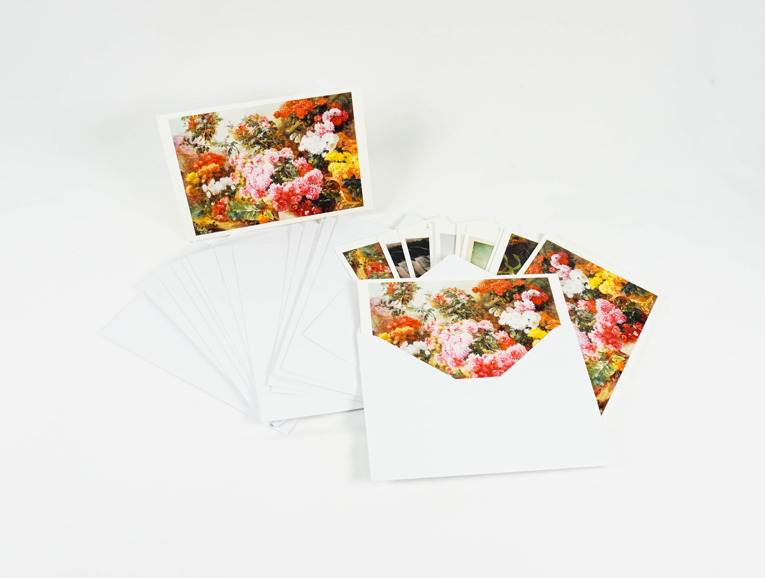 From a desert reed and vibrant orchids to tropical flowers and a lovely garden scene, these artworks present our favorite plants and flowers. Delicate hummingbirds fly next to orchids in a beautifully composed painting by botanical master Martin Johnson Heade. Chrysanthemums burst with a bright medley of colors. And Jean Benner-Fries's eye-catching exotic flowers evoke an earthly Eden. With variety and plenty of color, these fine art botanicals will surely appeal to flower-lovers, gardening aficionados, and everyone in between. 20 notecards, 4 each of 5 images. 20 envelopes. Sturdy, reusable box, great for storage.