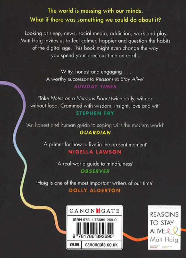 The follow-up to the number one Sunday Times bestseller Reasons to Stay AliveTHE NUMBER ONE SUNDAY TIMES BESTSELLERThe world is messing with our minds. What if there was something we could do about it?Looking at sleep, news, social media, addiction, work and play, Matt Haig invites us to feel calmer, happier and to question the habits of the digital age. This book might even change the way you spend your precious time on earth.