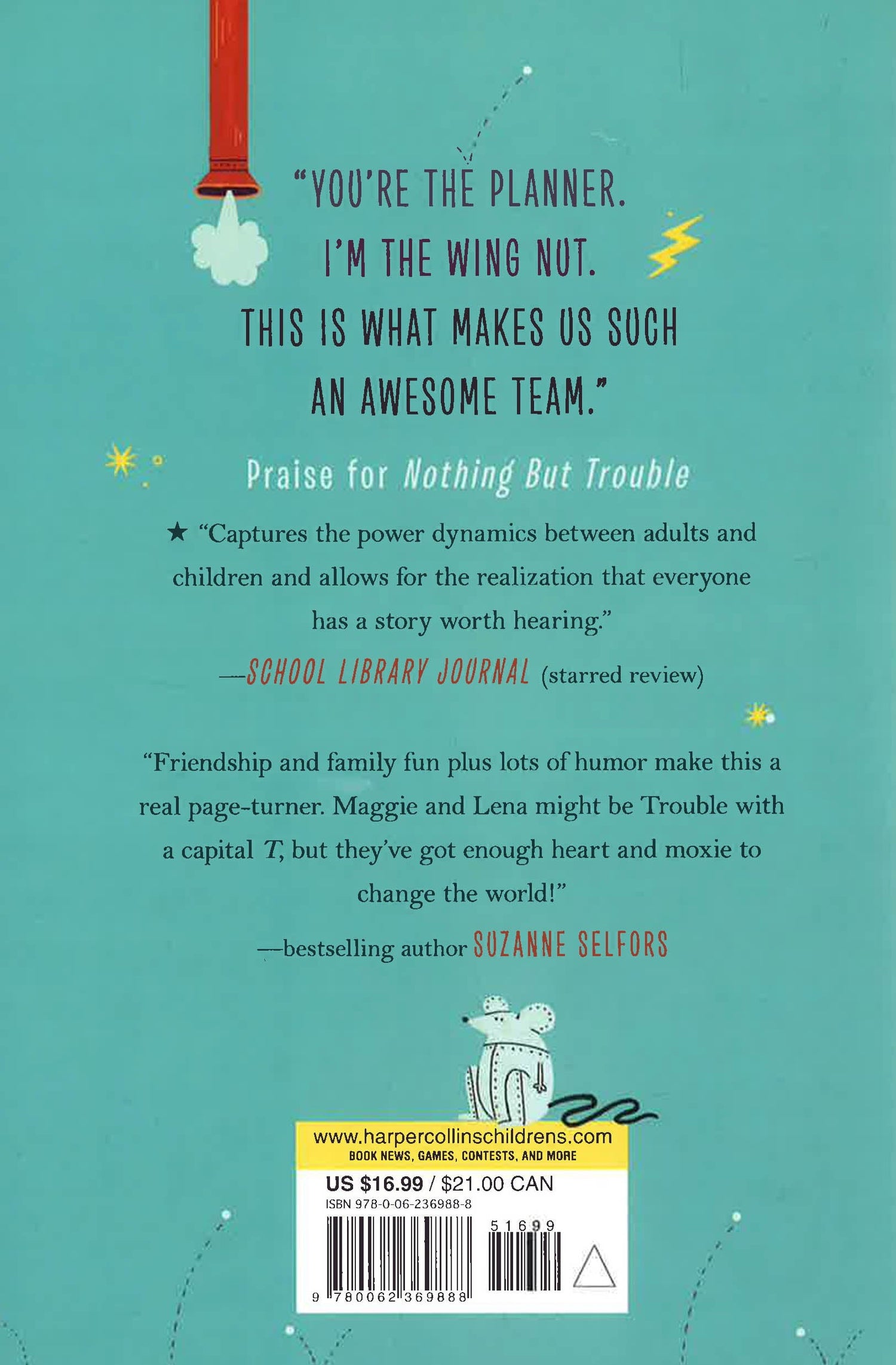 From the acclaimed author of The Lemonade War comes a new book starring two smart girls determined to liven up their town-one epic prank at a time. Odawahaka has always been too small for Maggie's big scientific ideas. Between her stuck-in-a-rut mom, her grumpy grandpop, and the lifetime supply of sludgy soda in the fridge, it's hard for Maggie to imagine a change. But when Lena moves in with her creative spirit and outrageous perspective, middle school takes off with a bang. Someone starts pulling the kind of pranks that send their rule-loving new principal into an uproar-complete with purple puffs of smoke, parachuting mice, and a scavenger hunt that leads to secret passageways. Suddenly the same-old football games, election for class president, and embarrassing stories feel almost exciting. And for the first time in her life, Maggie begins to wonder if there might be more to Odawahaka than she ever saw coming! Humorous, smart, and full of small-town heart, Nothing But Trouble will have mischief-loving readers caught up in the cleverness and determination of two girls who can't be held down. *this book may have remainder mark*
