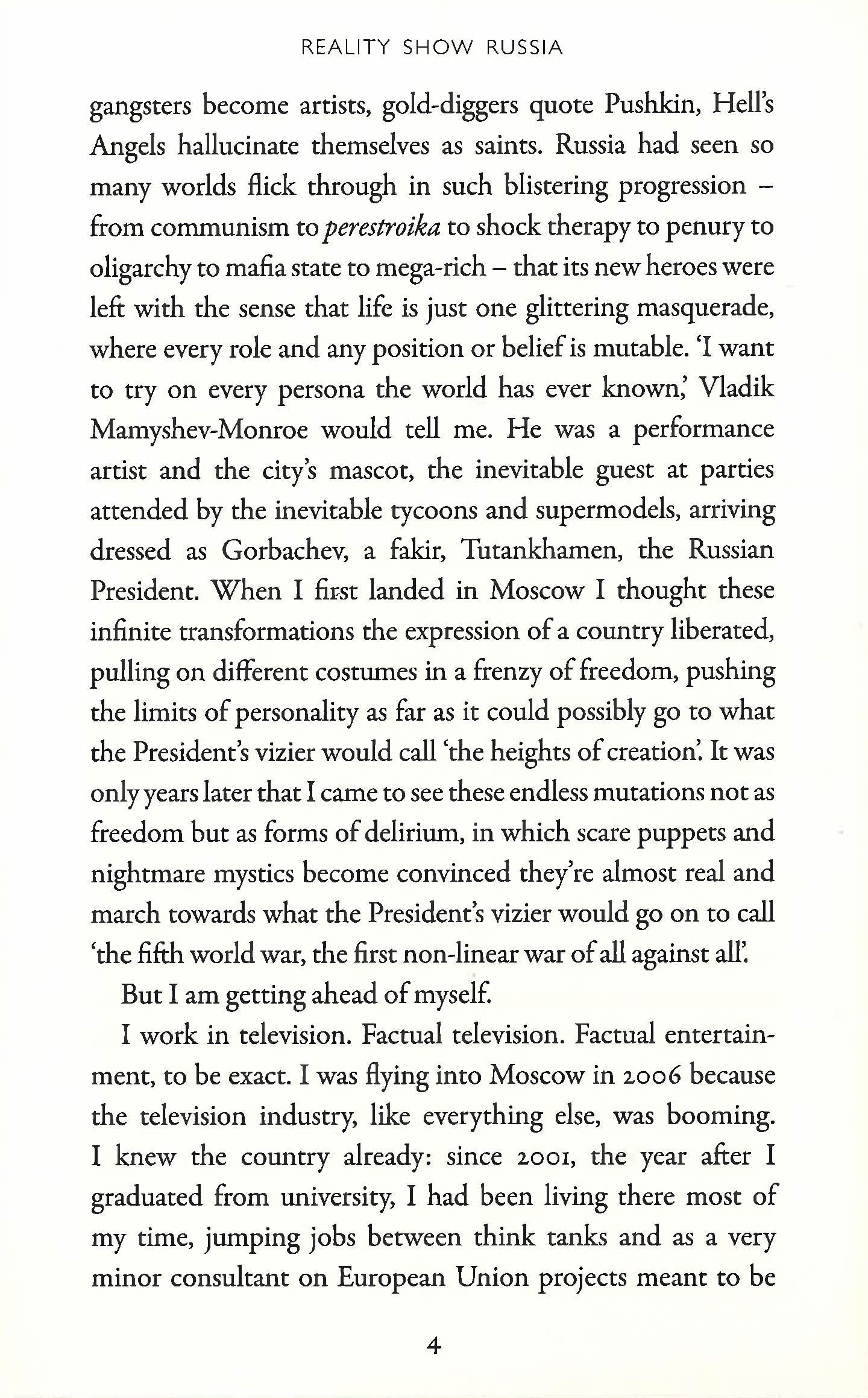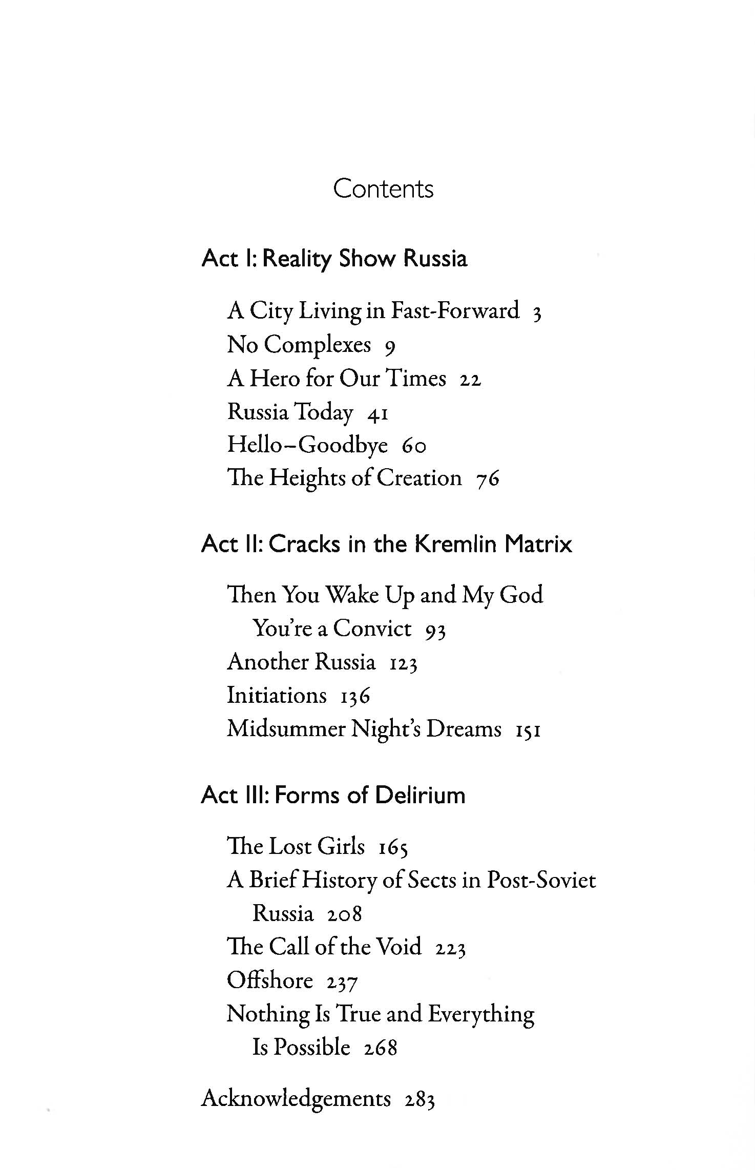 Takes you on a journey into the glittering, surreal heart of 21st century Russia: into the lives of Hells Angels convinced they are messiahs, professional killers with the souls of artists, bohemian theatre directors turned Kremlin puppet-masters, supermodel sects, post-modern dictators and oligarch revolutionaries. This is a world erupting with new money and new power, changing so fast it breaks all sense of reality, where life is seen as a whirling, glamorous masquerade where identities can be switched and all values are changeable. It is home to a new form of authoritarianism, far subtler than 20th century strains, and which is rapidly expanding to challenge the global order. An extraordinary book - one which is as powerful and entertaining as it is troubling - Nothing is True and Everything is Possible offers a wild ride into this political and ethical vacuum.
