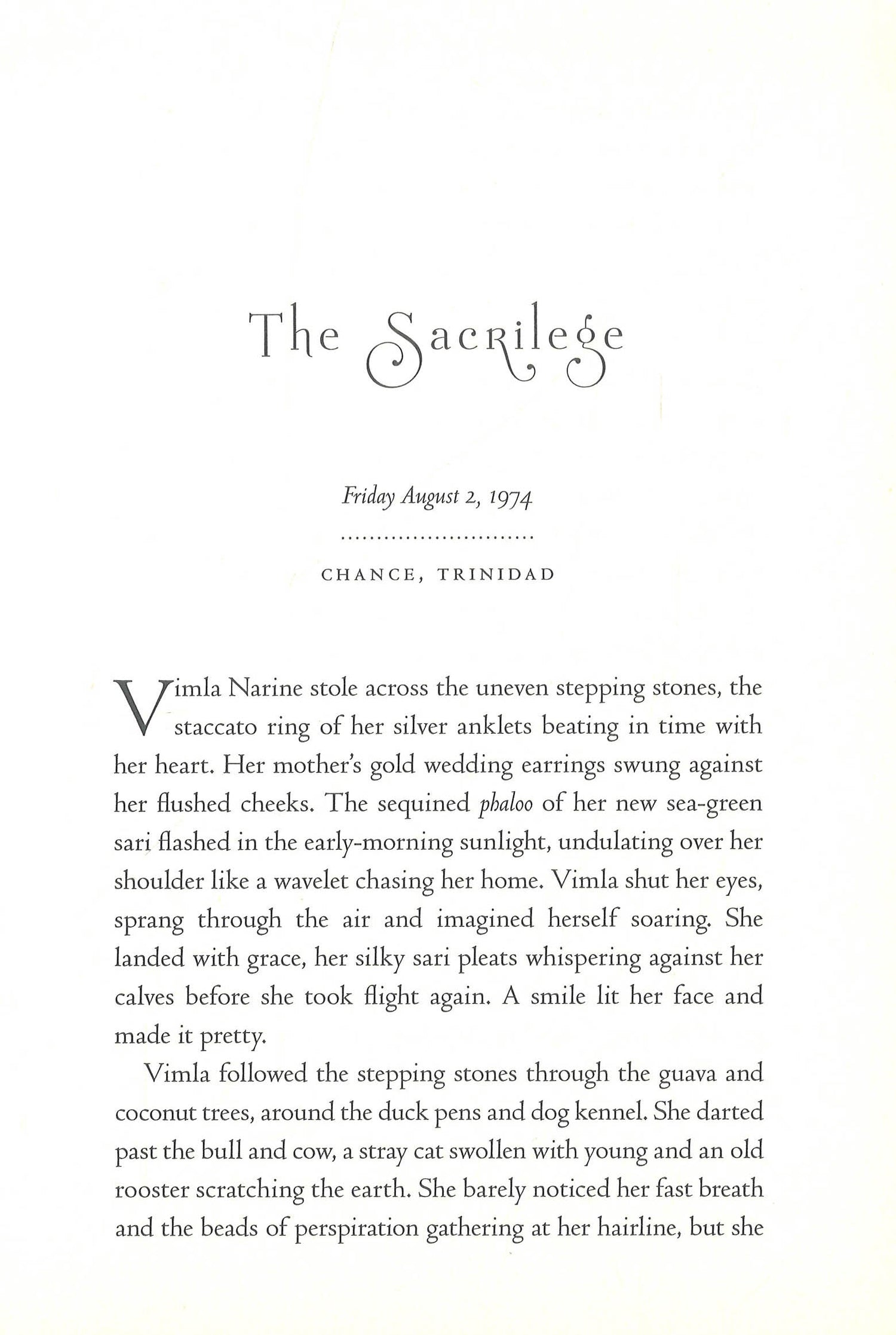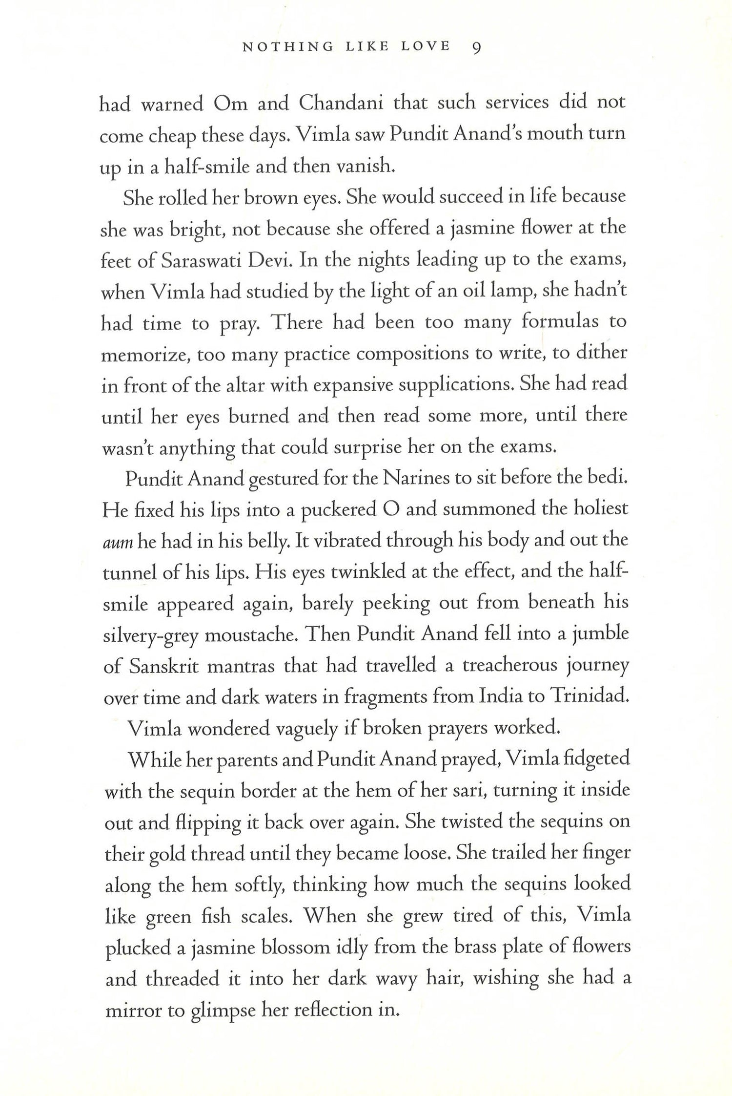It is 1974 in the town of Chance, Trinidad--home to a colourful cast of cane farmers, rum-drinkers, scandal-mongers . . . and a bright 18-year-old schoolgirl named Vimla Narine. After passing her A-levels with extraordinary results and accepting the coveted teaching post at Saraswati Hindu school, Vimla is caught with the village pundit's son, Krishna Govind. At night. Holding hands. By morning, even the village vagrant has heard the news and the Govinds and Narines find themselves at the heart of Chance's most delicious disgrace since a woman chased her cheating husband from the district with a rolling pin.