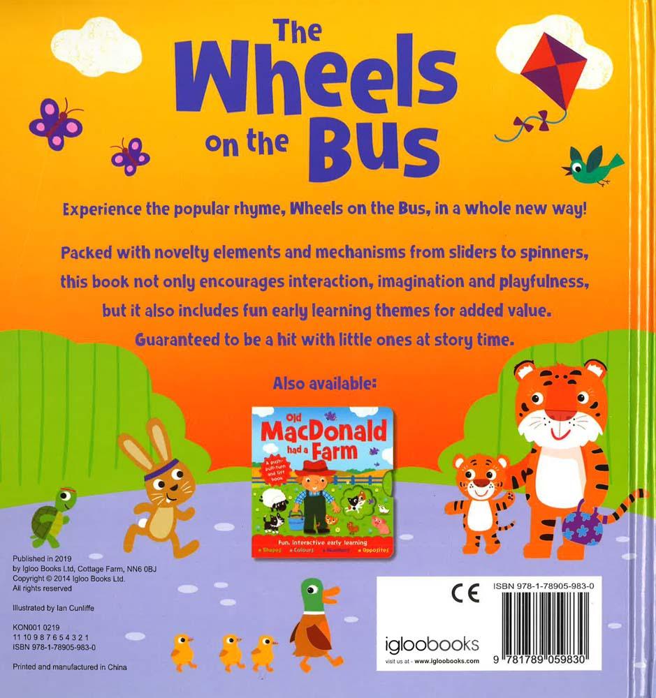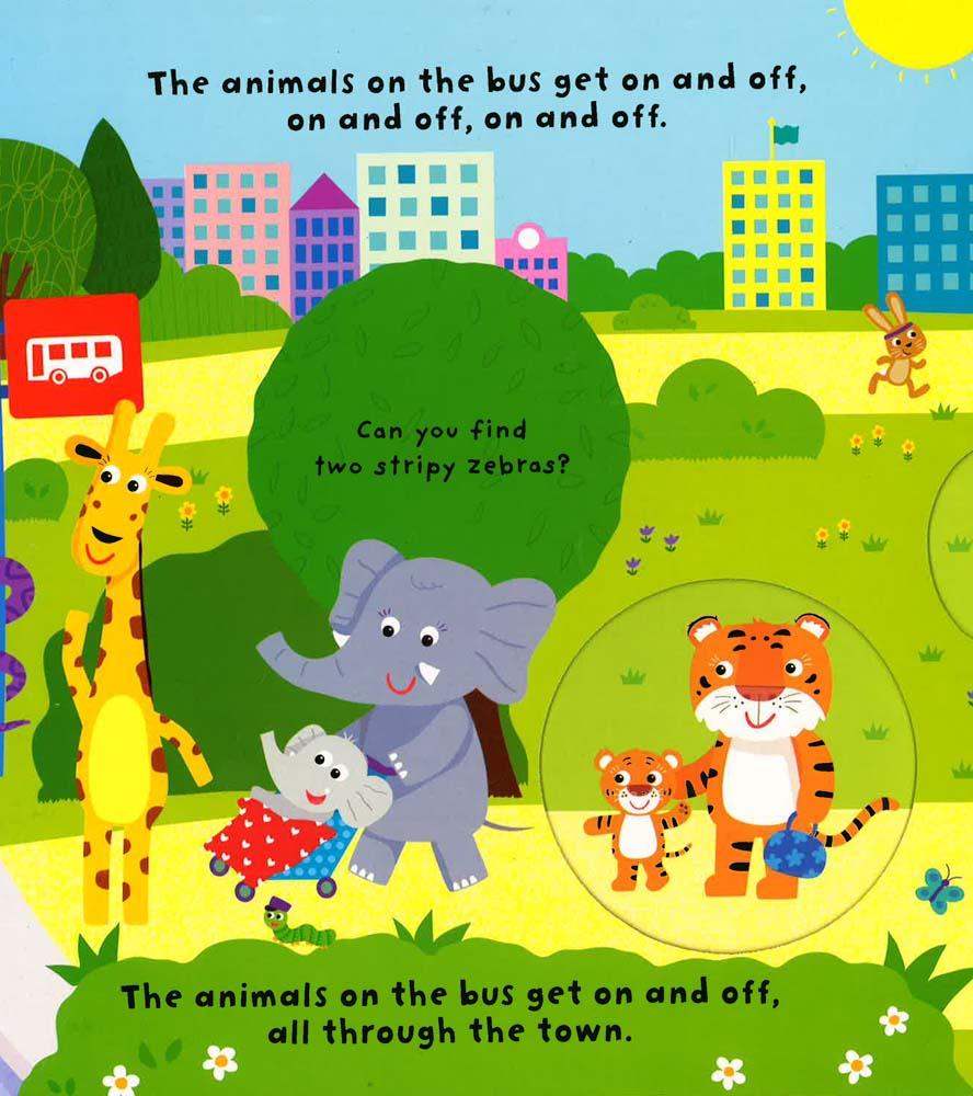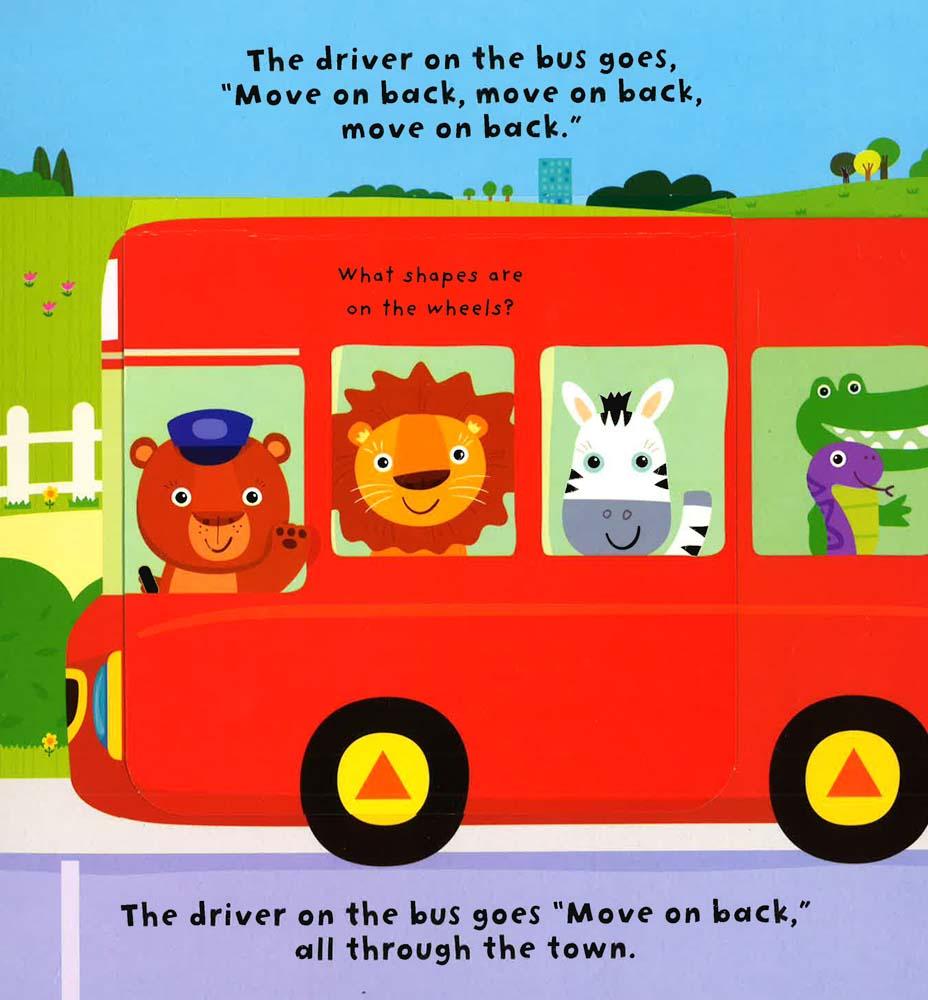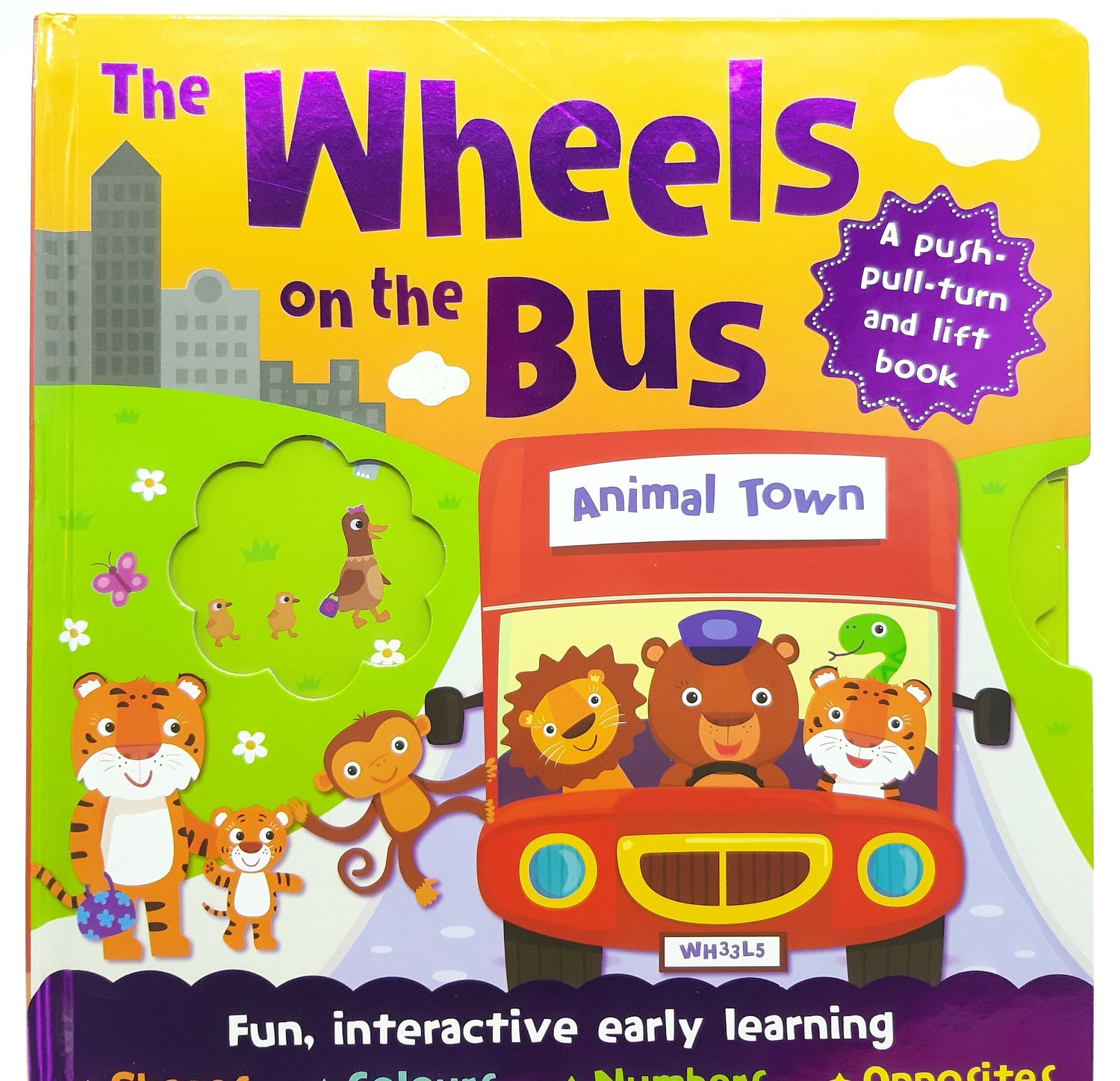The wheels on the bus go round and round! Sing along with the much-loved rhyme, then push, pull and pop to discover a whole world of animal silliness!
