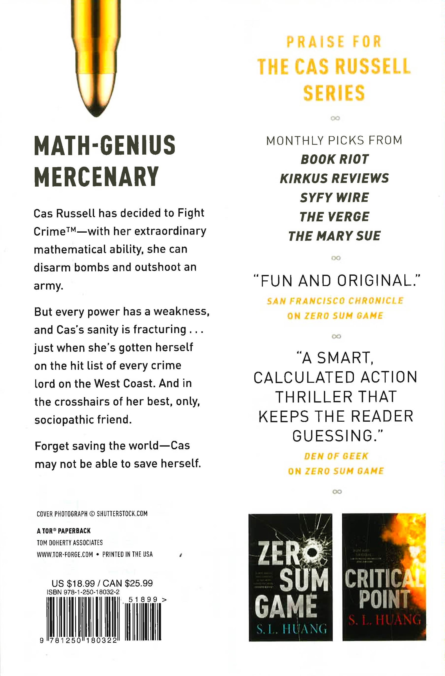 Math-genius mercenary Cas Russell has decided to Fight Crime(tm). After all, with her extraordinary mathematical ability, she can neuter bombs or out-shoot an army. And the recent outbreak of violence in the world's cities is Cas's fault--she's the one who crushed the organization of telepaths keeping the world's worst offenders under control.