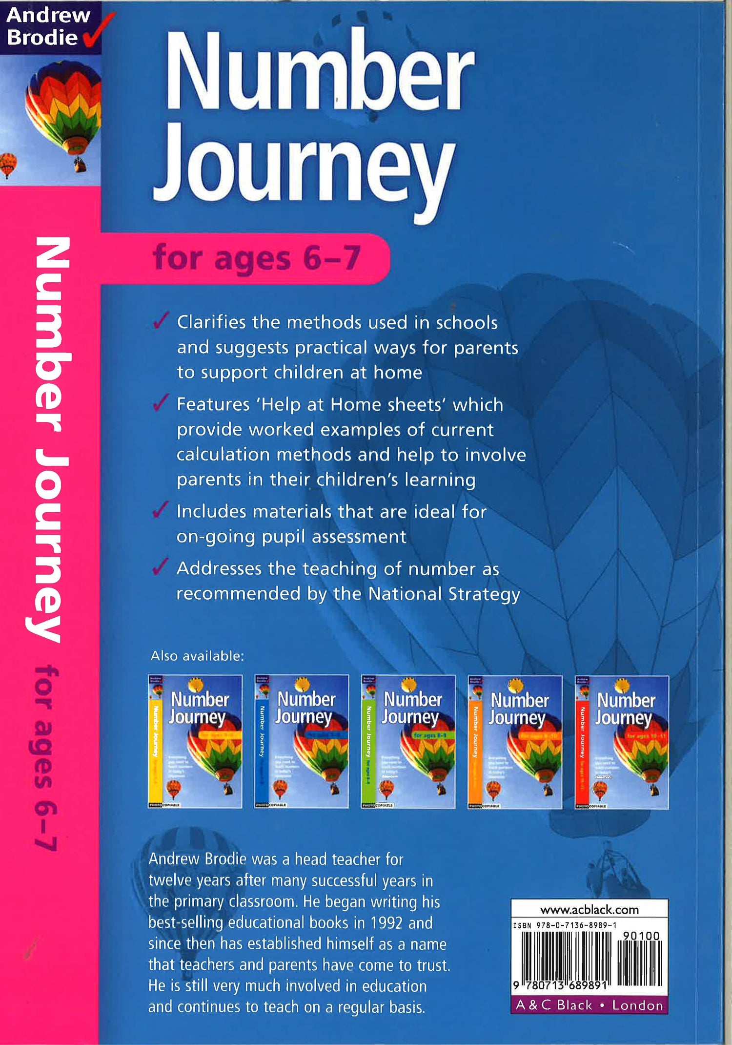 An exciting new series of Maths titles from Andrew Brodie focusing on the teaching of number and calculation skills. Primary children are now taught number and calculation skills using a range of different methods. This range and variety is most noticeable at Key Stage 2 but the foundations are laid in Key Stage 1. The most obvious difficulties emerge with how to teach multiplication. Most schools are now using a grid method, which should lead through to a vertical format, but many teachers are not clear as to when to make the switch or how to do it. What Number Journey provides is a clear, logical progression with lots of practice at each step along the way. It covers the four rules: addition, subtraction and multiplication and specify particular methods for each one. Most of the materials that are currently on the market are full maths programmes addressing all aspects of maths, including 'using and applying mathematics', or are targeting narrow areas such as mental maths. Number Journey would address strands 2, 3 and 4 of the new Mathematics framework: 'counting and understanding number', 'knowing and using number facts' and 'calculating'.