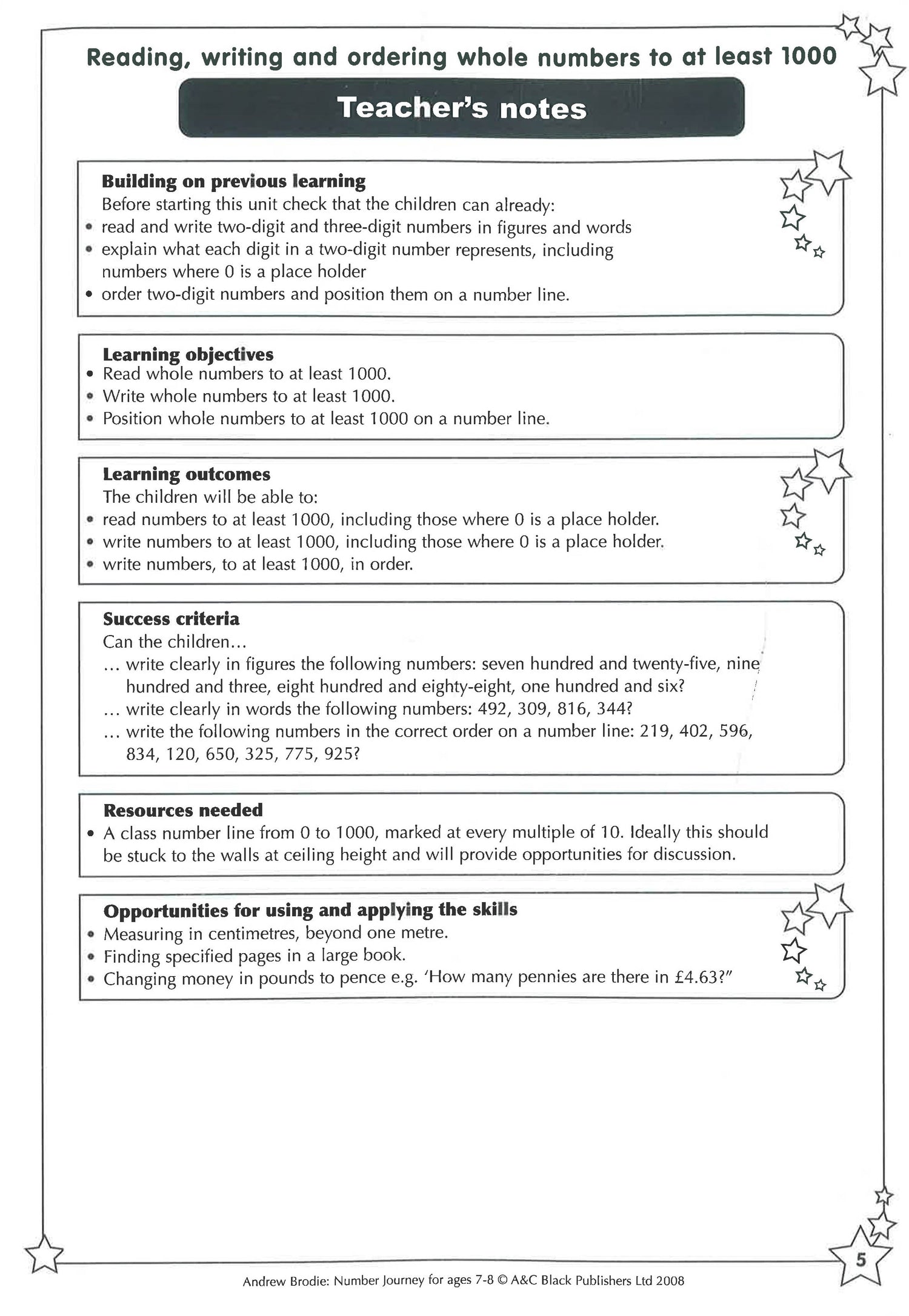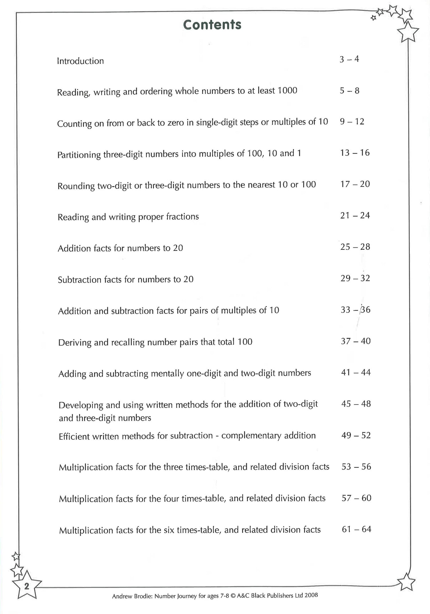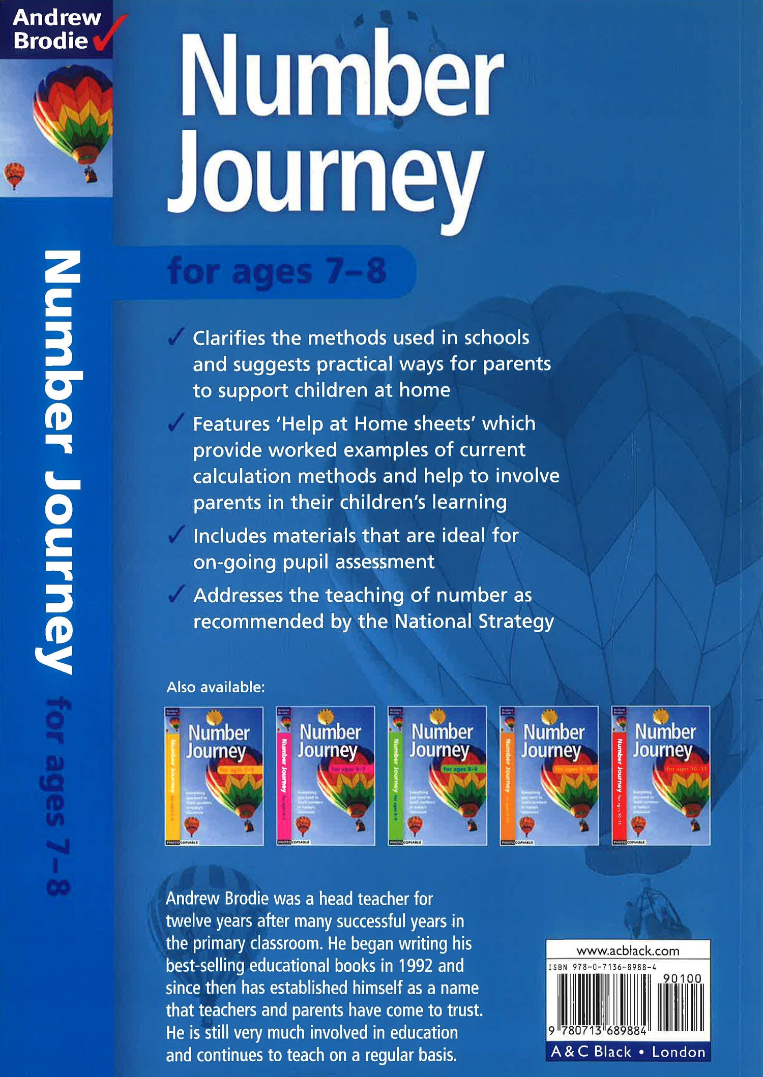 An exciting new series of Maths titles from Andrew Brodie focusing on the teaching of number and calculation skills. Primary children are now taught number and calculation skills using a range of different methods. This range and variety is most noticeable at Key Stage 2 but the foundations are laid in Key Stage 1. The most obvious difficulties emerge with how to teach multiplication. Most schools are now using a grid method, which should lead through to a vertical format, but many teachers are not clear as to when to make the switch or how to do it. What Number Journey provides is a clear, logical progression with lots of practice at each step along the way. It covers the four rules: addition, subtraction and multiplication and specify particular methods for each one. Most of the materials that are currently on the market are full maths programmes addressing all aspects of maths, including 'using and applying mathematics', or are targeting narrow areas such as mental maths. Number Journey would address strands 2, 3 and 4 of the new Mathematics framework: 'counting and understanding number', 'knowing and using number facts' and 'calculating'.