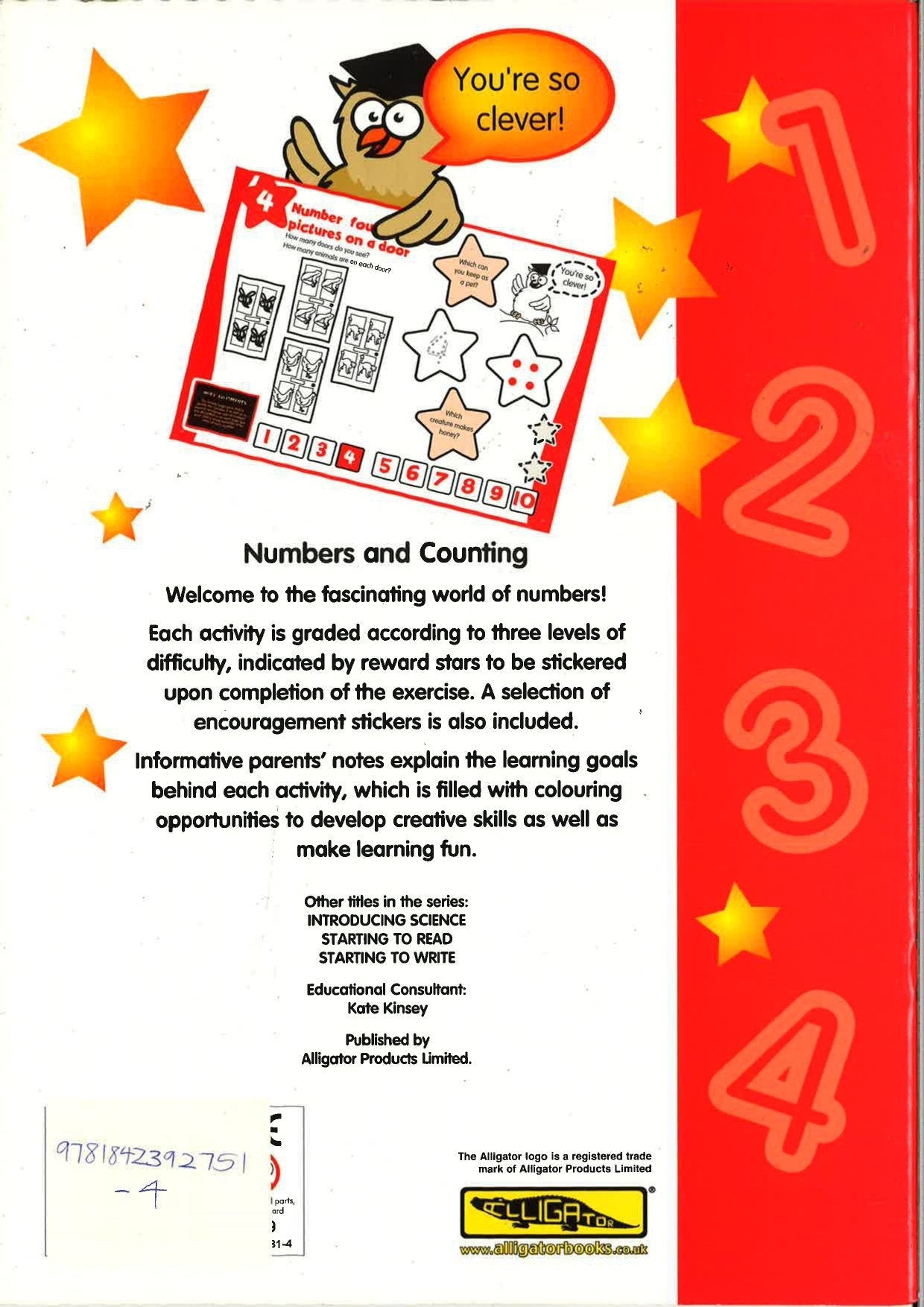 Numbers and Counting pre-school workbook with over 50 gold reward stickers and stars. A4 sized 32 page workbook with certificate for completing the entire book. Includes activities such as rhyming ends to words, matching words with similar sounds, blending two sounds to make a new sound and much more. Each activity includes colouring activities to develop creative skills and make learning fun. Is graded according to three levels of difficulty and indicated by the number of stickers that are awarded for finishing the page. Informative parent's notes explain the learning goals behind each activity. Suitable for ages 3-5.