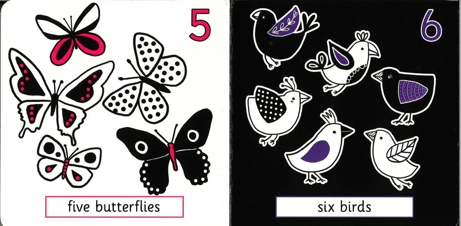 These bold and decorative pictures are the perfect introduction to numbers. The high-contrast black-and-white images can stimulate babies' visual development.