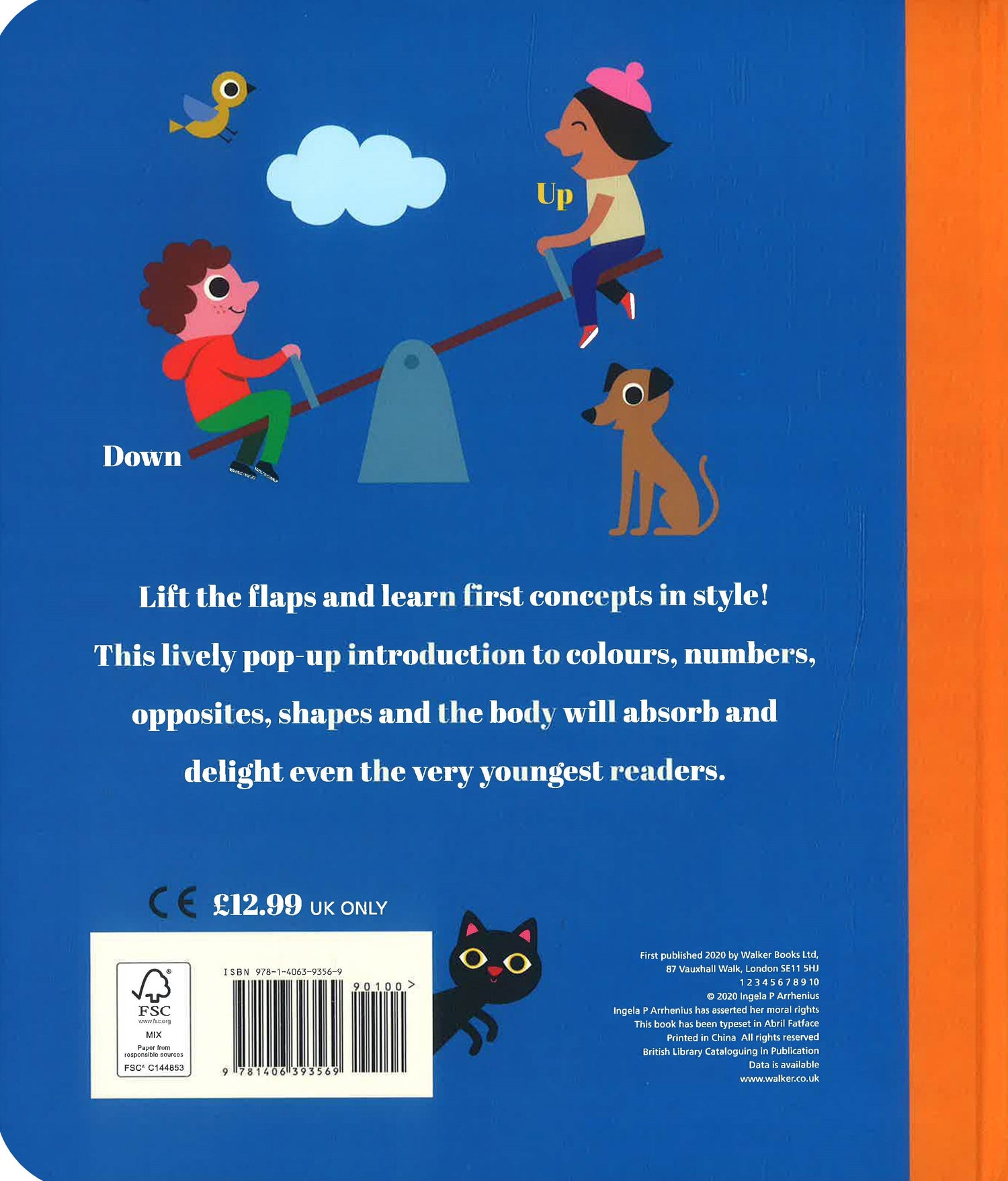 Lift the flaps in this engaging introduction to colours, numbers, shapes, opposites and the body for the very youngest readers. A quirky first concepts book with a pop-up on each spread from much-loved illustrator Ingela P Arrhenius.