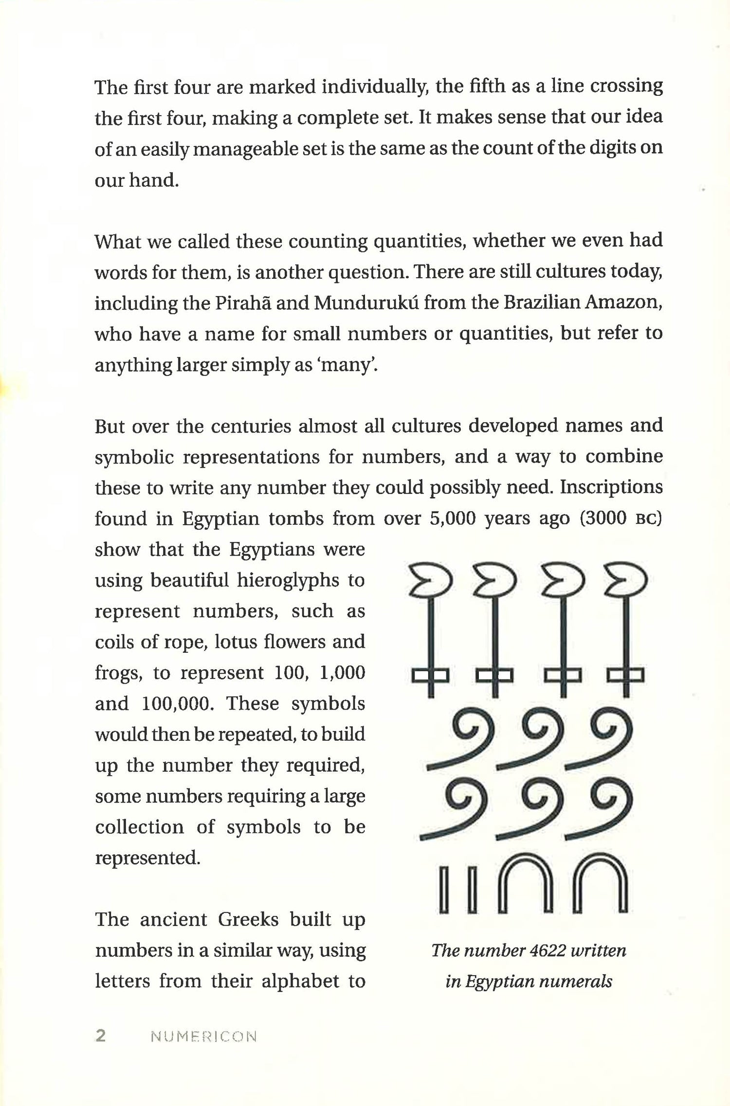 Numericon tells the stories of the numbers, mathematical discoveries, oddities and personalities that have shaped the way we understand the world around us. Each chapter is its own story about a number: why 12 is a sublime number, why 13 is unlucky and 7 lucky, and how imaginary numbers hold up buildings. The book tells the stories of ancient mathematicians, ground-breaking discoveries and mathematical applications that affect our world and our lives in so many ways.