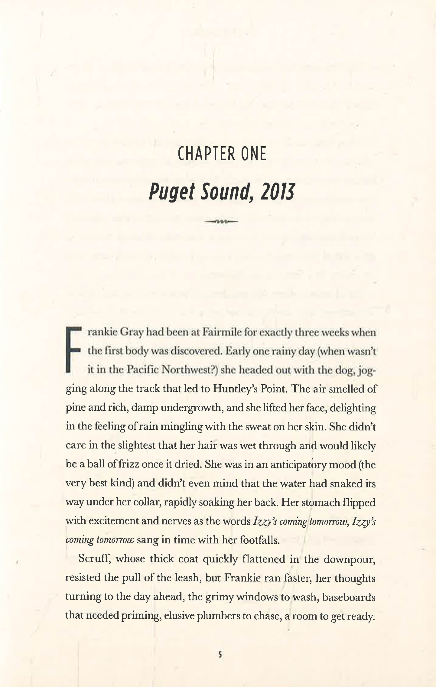2013 Frankie Gray has come to the island for the summer, hoping for one last shot at reconnecting with her teenage daughter, Izzy, before starting a job as a deputy sheriff. They are staying with her mother, Diana, at The Fairmile Inn, soon to be a boutique hotel, but when an elderly nun is found dead in suspicious circumstances, and then a tiny skeleton is discovered in the grounds of the house, Frankie is desperate for answers.
