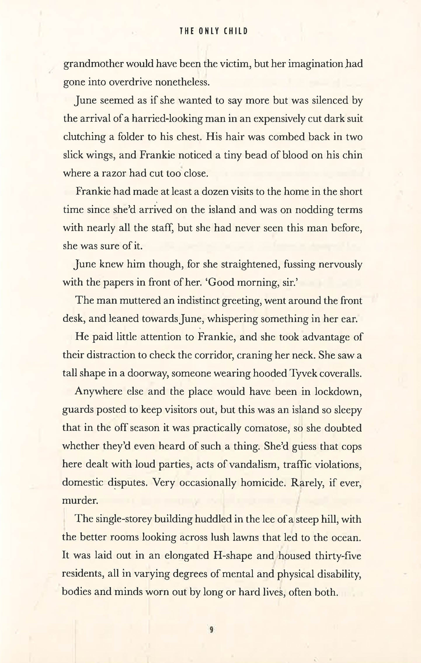 At once an evocative, unsettling tale of past misdeeds and a crime thriller that will have you reading with your heart in your mouth, The Only Child is compulsively addictive storytelling from the international bestselling author of The Silk House.