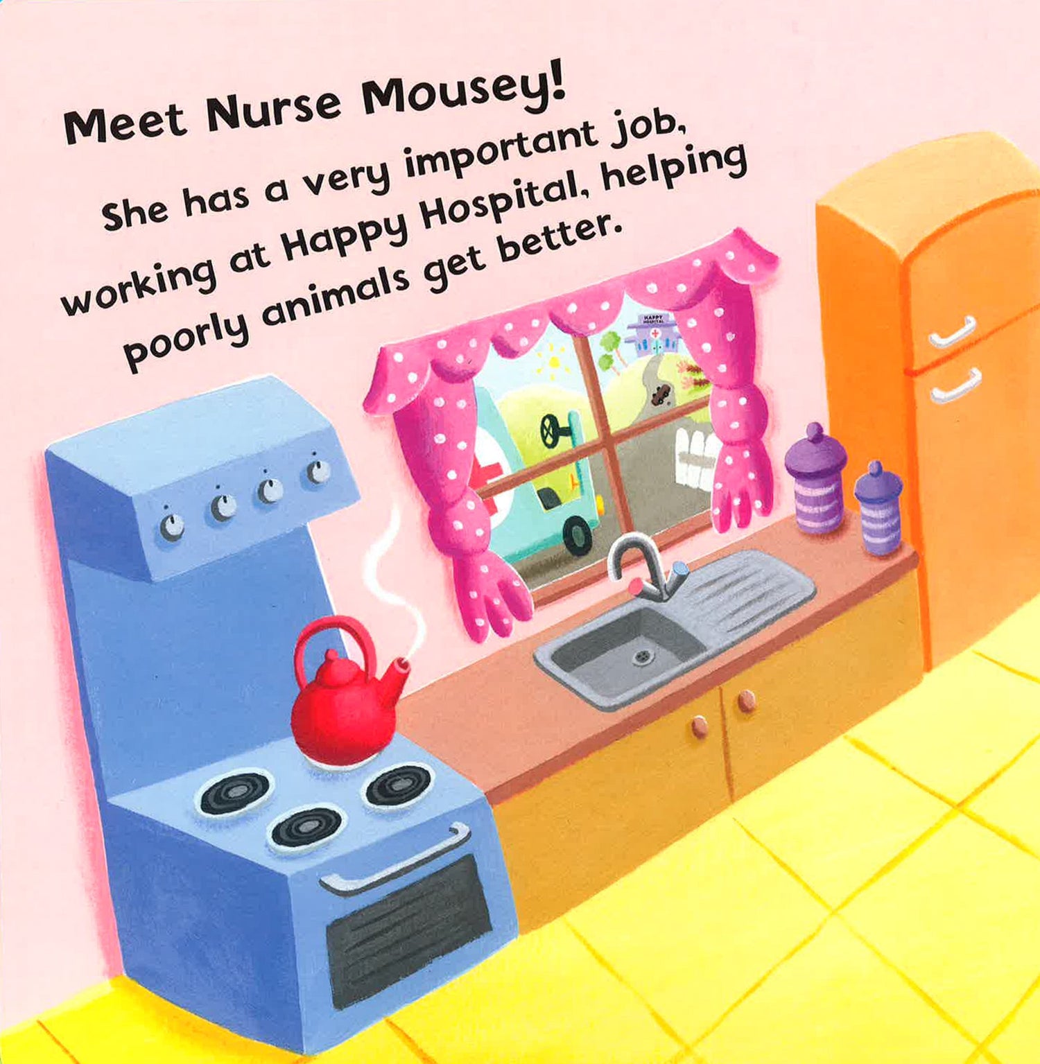 Nurse Mousey has a very special job - she works at Happy Hospital, making sure all the poorly animals get better. Can you help her get ready, then save the day when Cheeky Monkey falls over? Children will love moving Nurse Mousey around this action-packed first title of an exciting new series. *This book may have minor shelfwear.