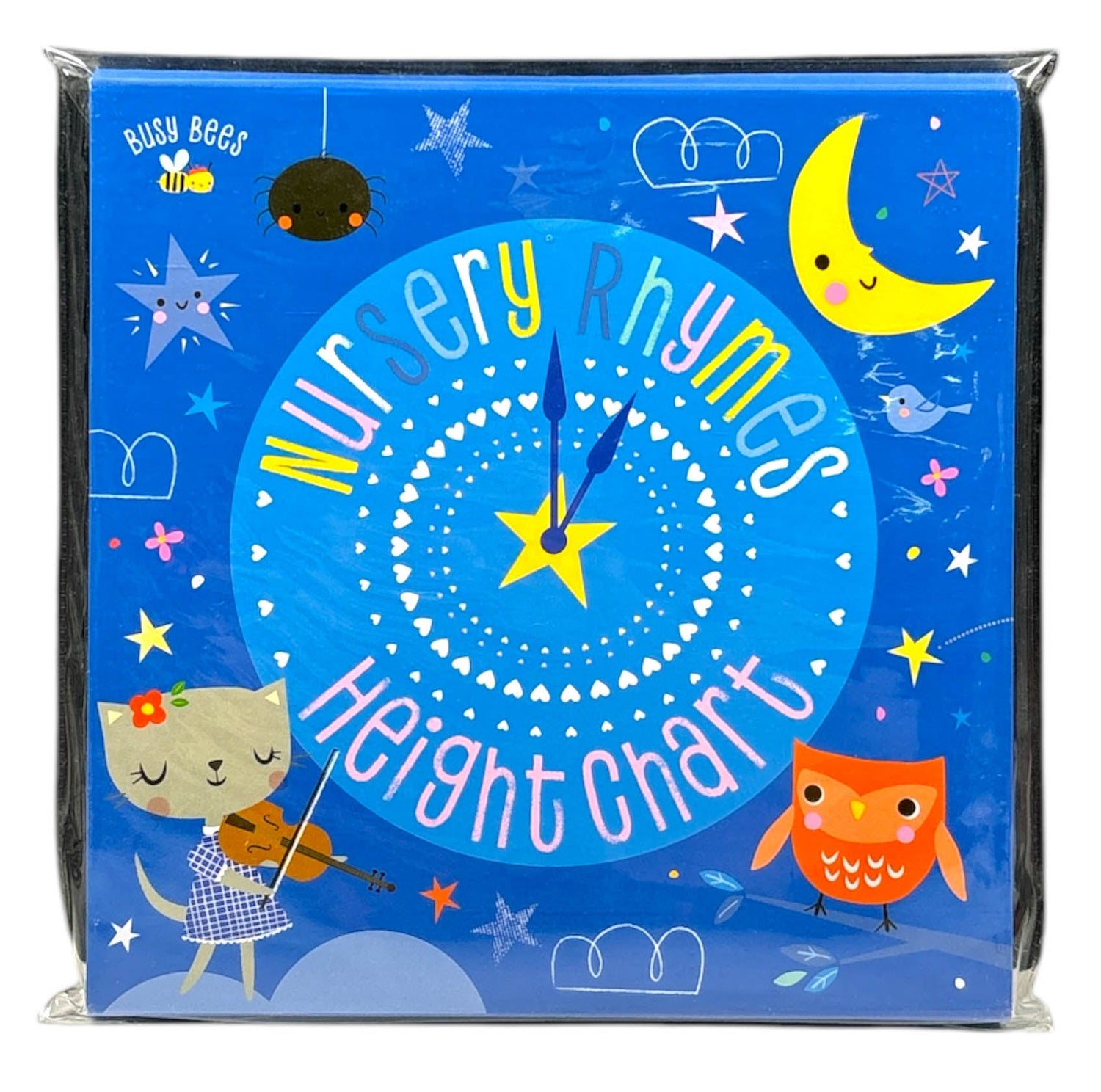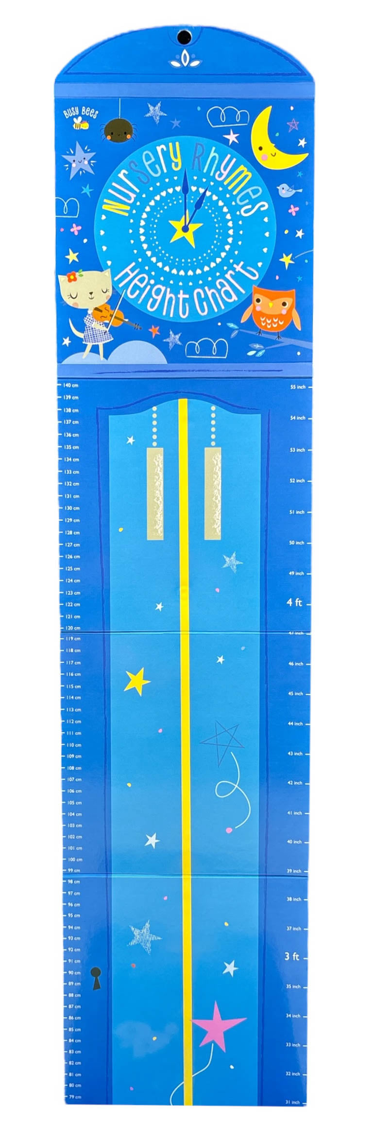 Introducing a gorgeous new height chart featuring charming illustrations by Shannon Hays. This sweet height chart makes it easy to track children s growth. The sturdy board chart reaches 140 cm (over 4_ feet) and can be easily folded away in the shape of a book. It comes with a hole at the top, making it easy to hang up and display on the wall. The chart also features illustrated nursery rhymes on the reverse side. SWEET HEIGHT CHART WITH NURSERY RHYMES ON THE REVERSE