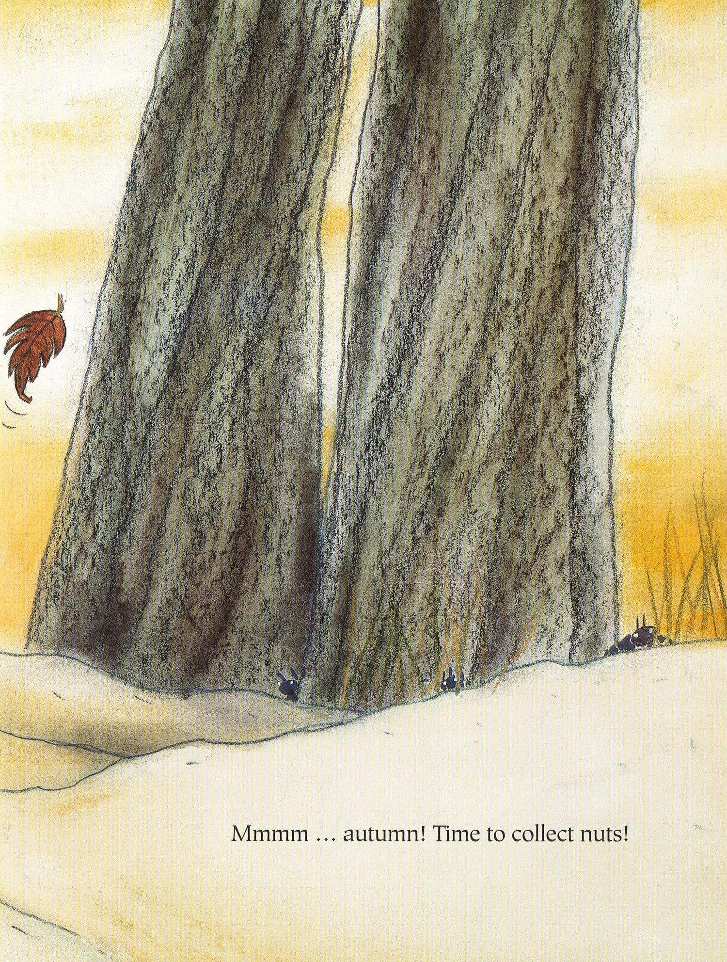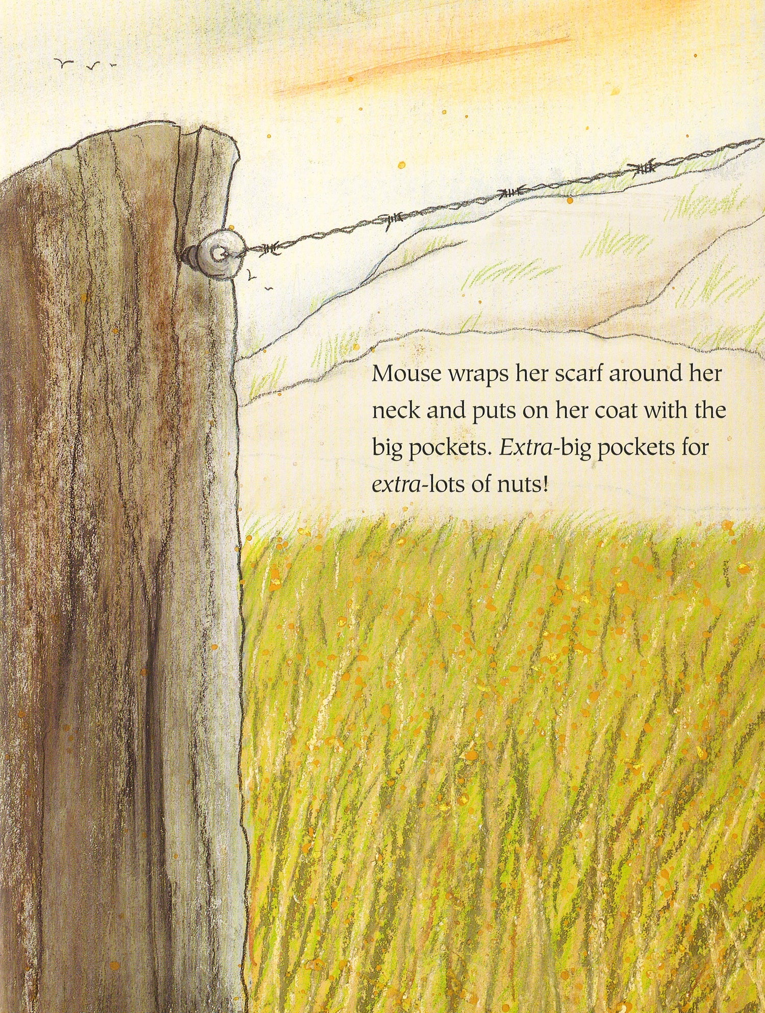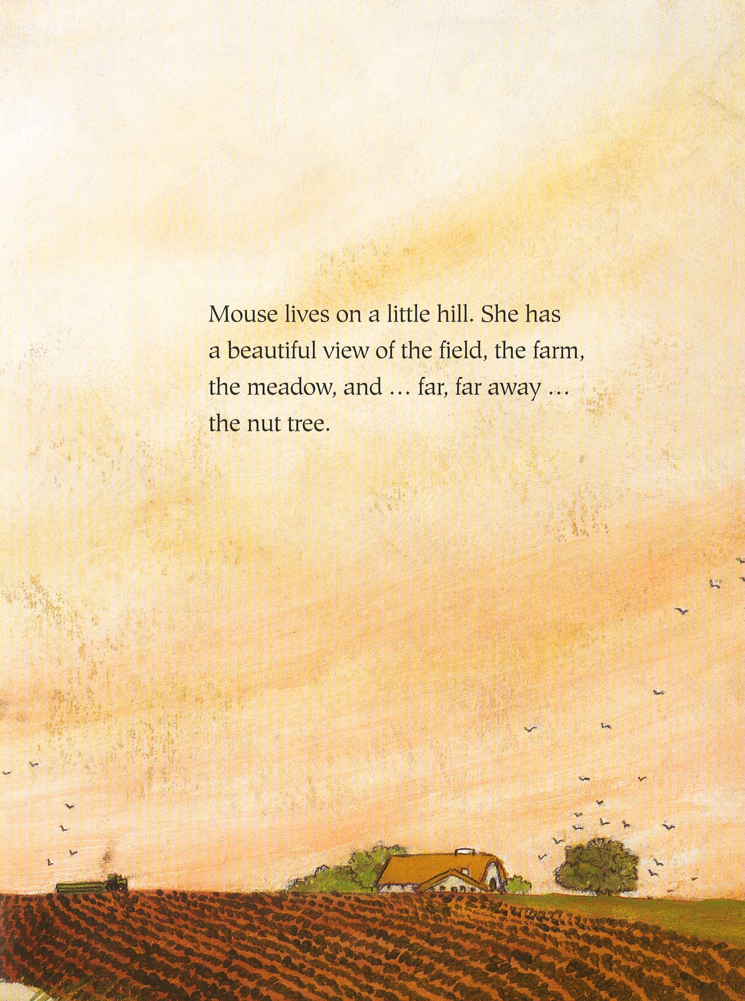 Autumn is in the air when Mouse sets out to gather nuts from the distant nut tree she has spotted from her hilltop home. The tree is far, far away--across the fields, meadows, and farms. Heedless of her friends' warnings about the dangers in her path, she makes her way to the tree. After a long blustery journey, Mouse is disappointed with what she finds. She makes her way home sadly, but when she gts there Gull is waiting for her with a pleasant surprise.