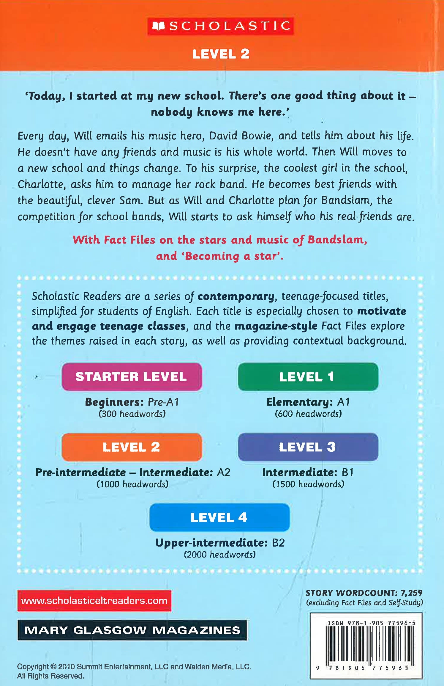 Extensive reading improves fluency and there is a real need in the ELT classroom for contemporary, graded material that will instantly appeal to students. "Bandslam" is based on the film of the same name, released in 2009, starring High School Musical star Vanessa Hudgens. Set in an American high school, the story focuses on a music-obsessed misfit called Will who finds himself manager of a school band. Do they have what it takes to win the 'Battle of the Bands' Bandslam competition.