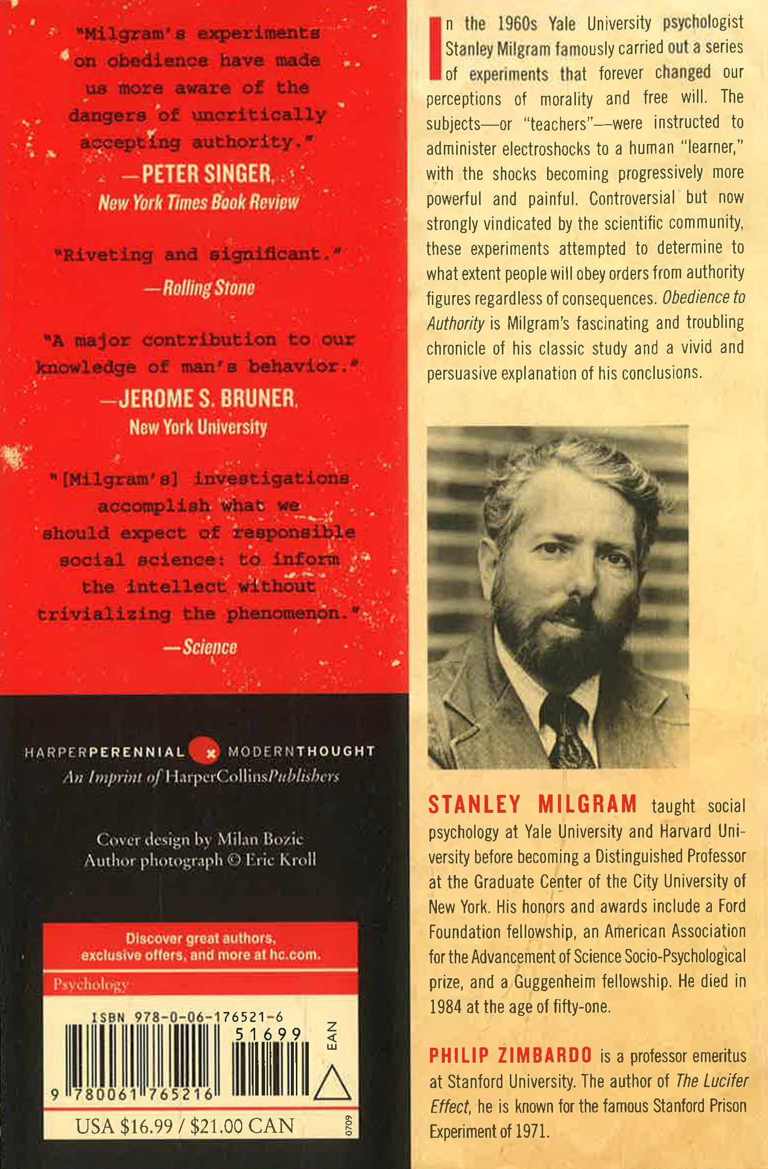 “The classic account of the human tendency to follow orders, no matter who they hurt or what their consequences.” — Michael Dirda, Washington Post Book World