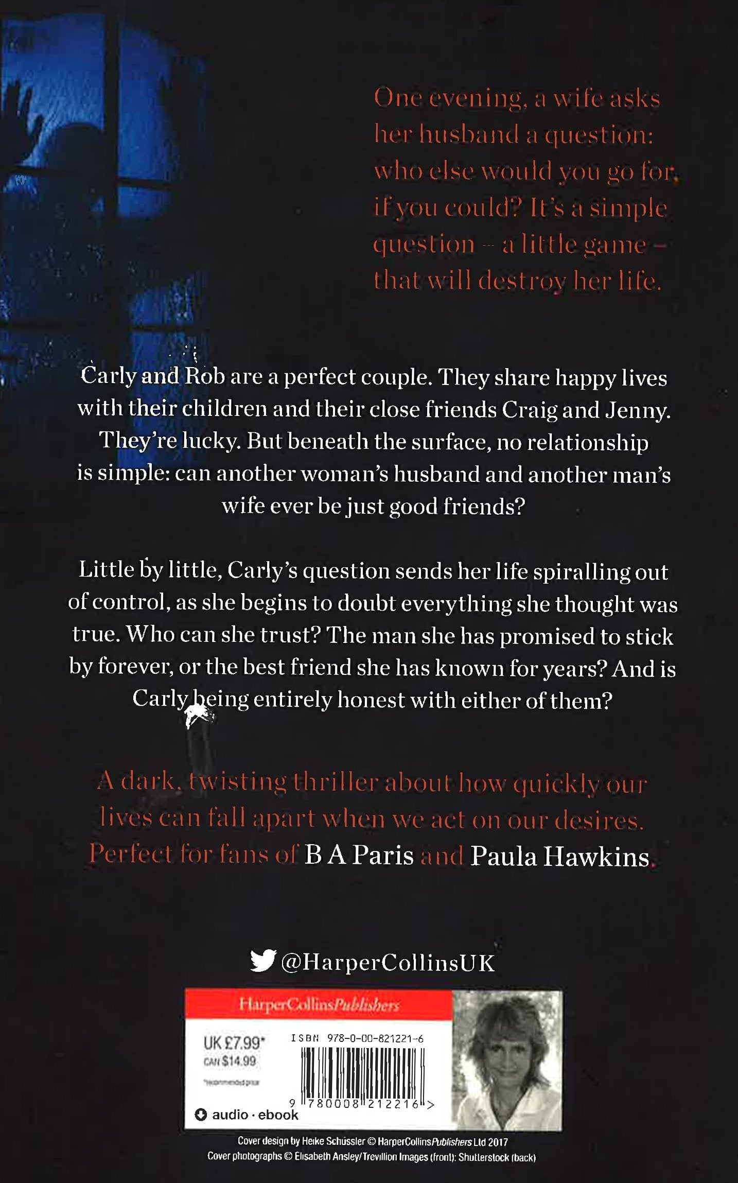 One evening, a wife asks her husband a question: who else would you go for, if you could? It is a simple question - a little game - that will destroy her life. Carly and Rob are a perfect couple. They share happy lives with their children and their close friends Craig and Jenny. They're lucky. But beneath the surface, no relationship is simple: can another woman's husband and another man's wife ever just be good friends? Little by little, Carly's question sends her life spiralling out of control, as she begins to doubt everything she thought was true. Who can she trust? The man she has promised to stick by forever, or the best friend she has known for years? And is Carly being entirely honest with either of them? Obsession is a dark, twisting thriller about how quickly our lives can fall apart when we act on our desires.
