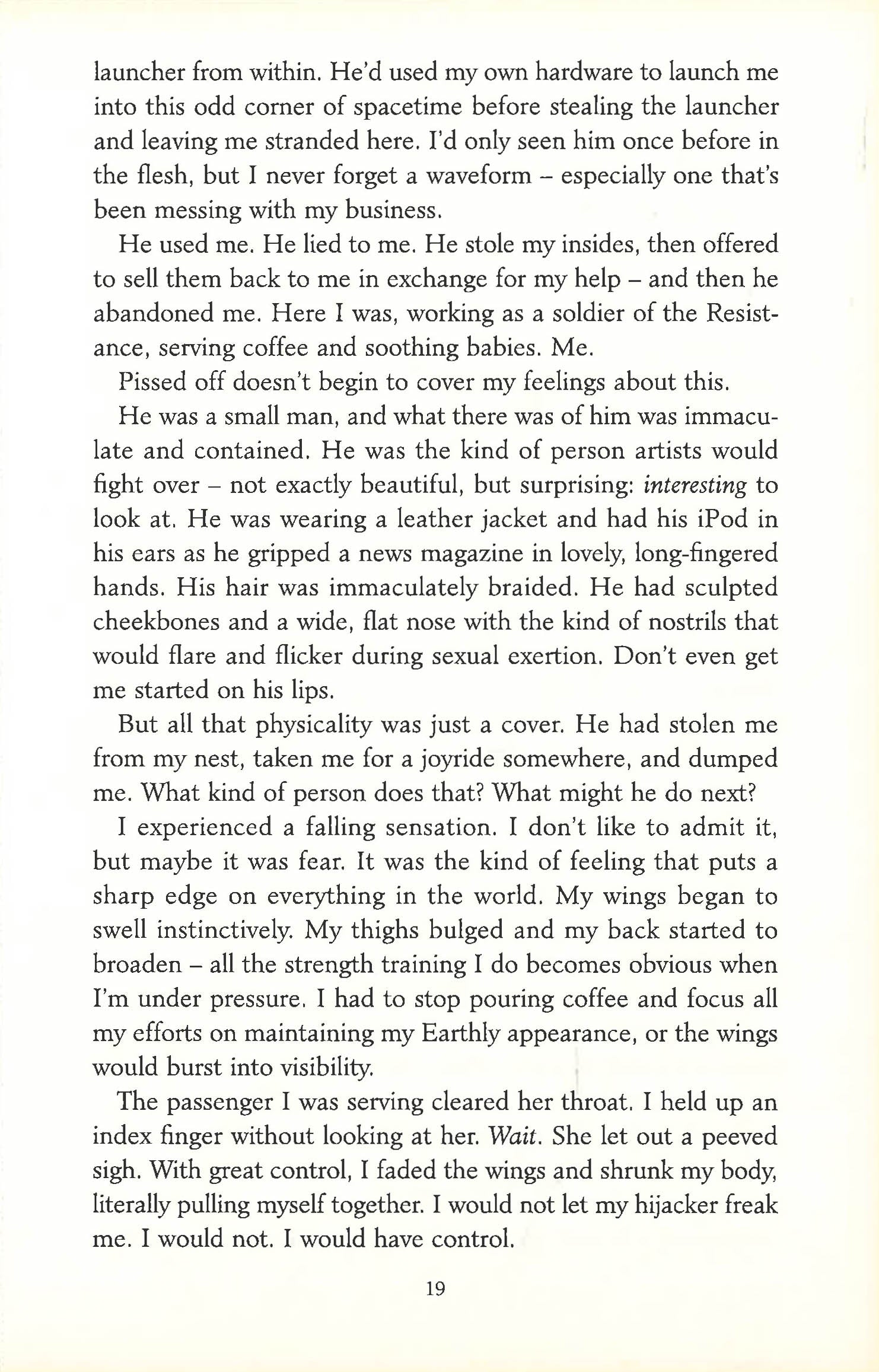 Pearl doesn't really know what she is, let alone who she is.She works for the Resistance, an organisation dedicated to improving the world by stealth.But Pearl also has wings. And she is strong; an extraordinary, terrifying strength capable of breaking reality.The Resistance can't account for that, nor for Pearl's mysterious origins.Now she is chasing a killer wearing another man's body and carrying a briefcase that is a ragged hole in the Universe. And the Universe has plans for Pearl . . .