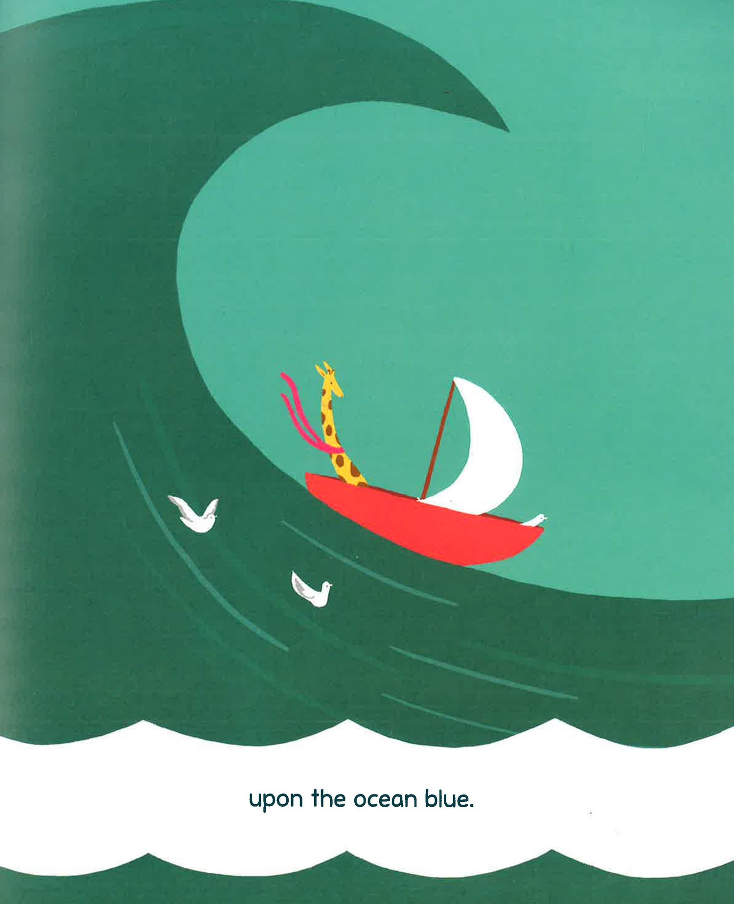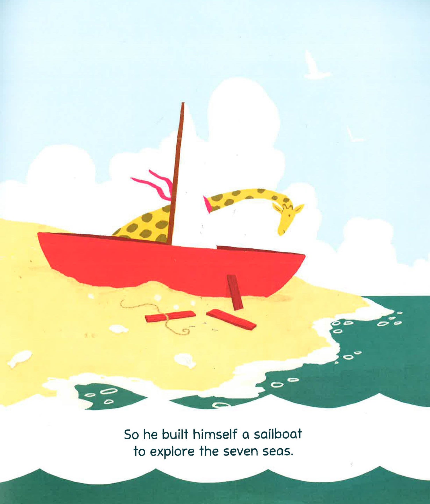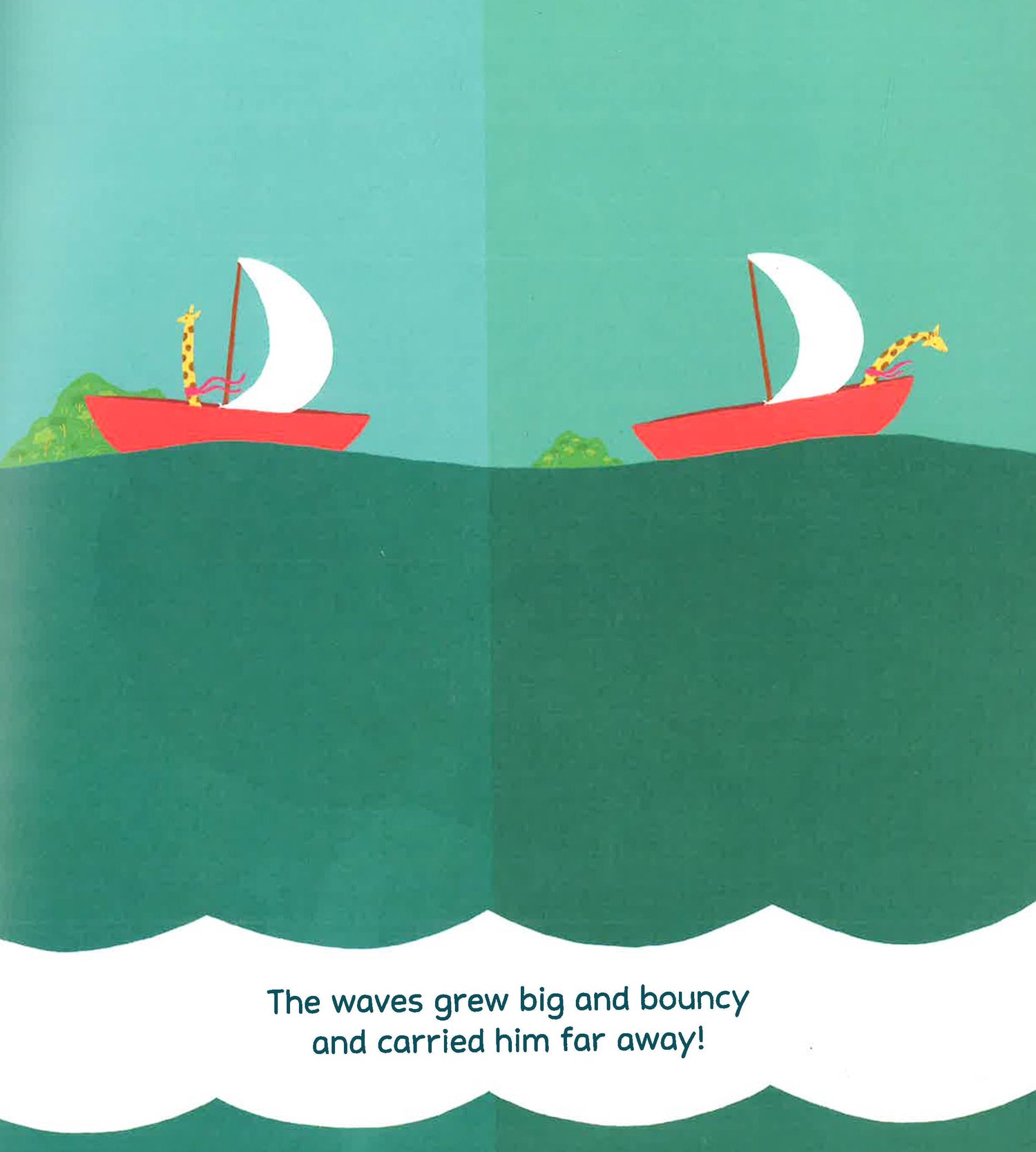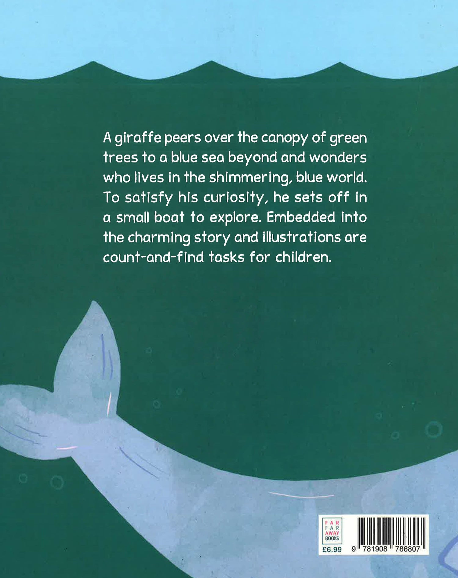 A giraffe who is tired of looking at trees decides to explore the sea. As the waves carry him out in is little boat he meets many ocean creatures, including turtles, dolphins, star fish, sea horses, and more. Embedded into a simple, charming story with beautiful illustrations are count-and-find tasks for children.