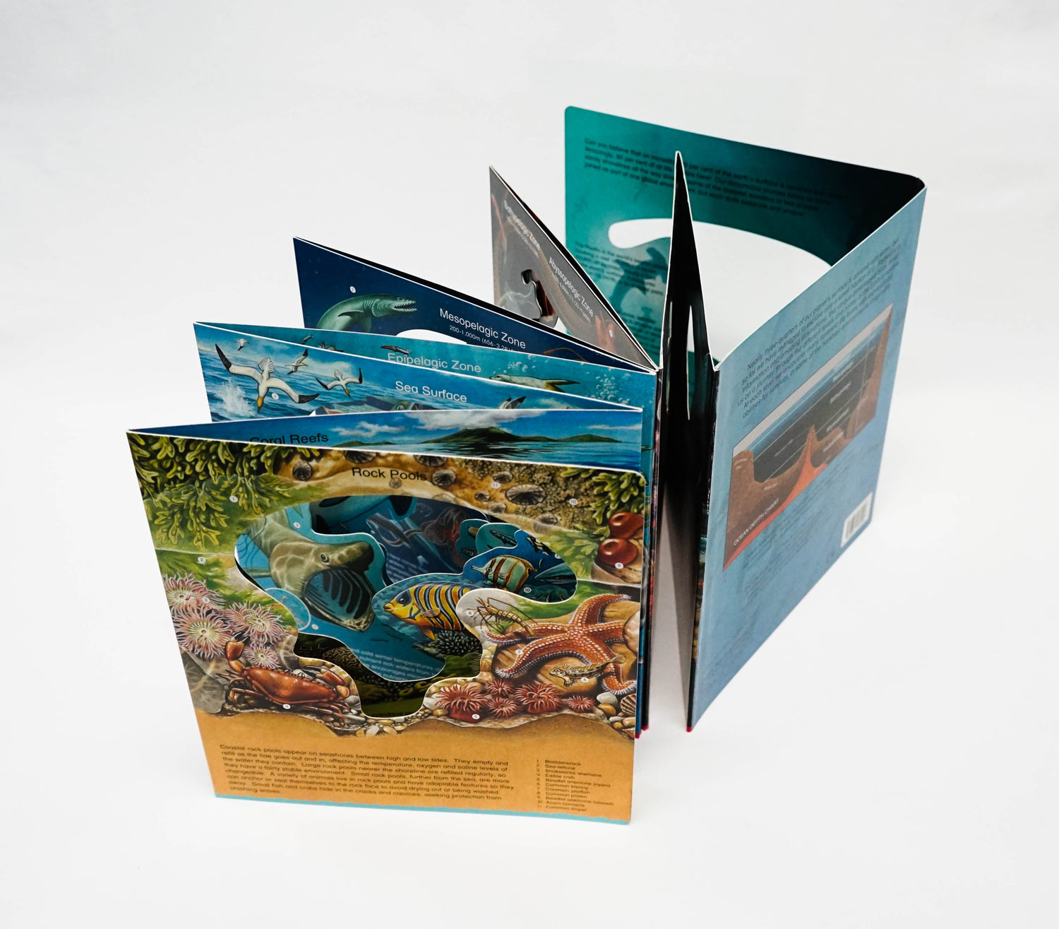 From the sunlit surface to the darkness of the deep, this book explores the fascinating life forms that exist in our oceans. Peer in to the depths of this tunnel effect book and investigate each zone of the ocean.
