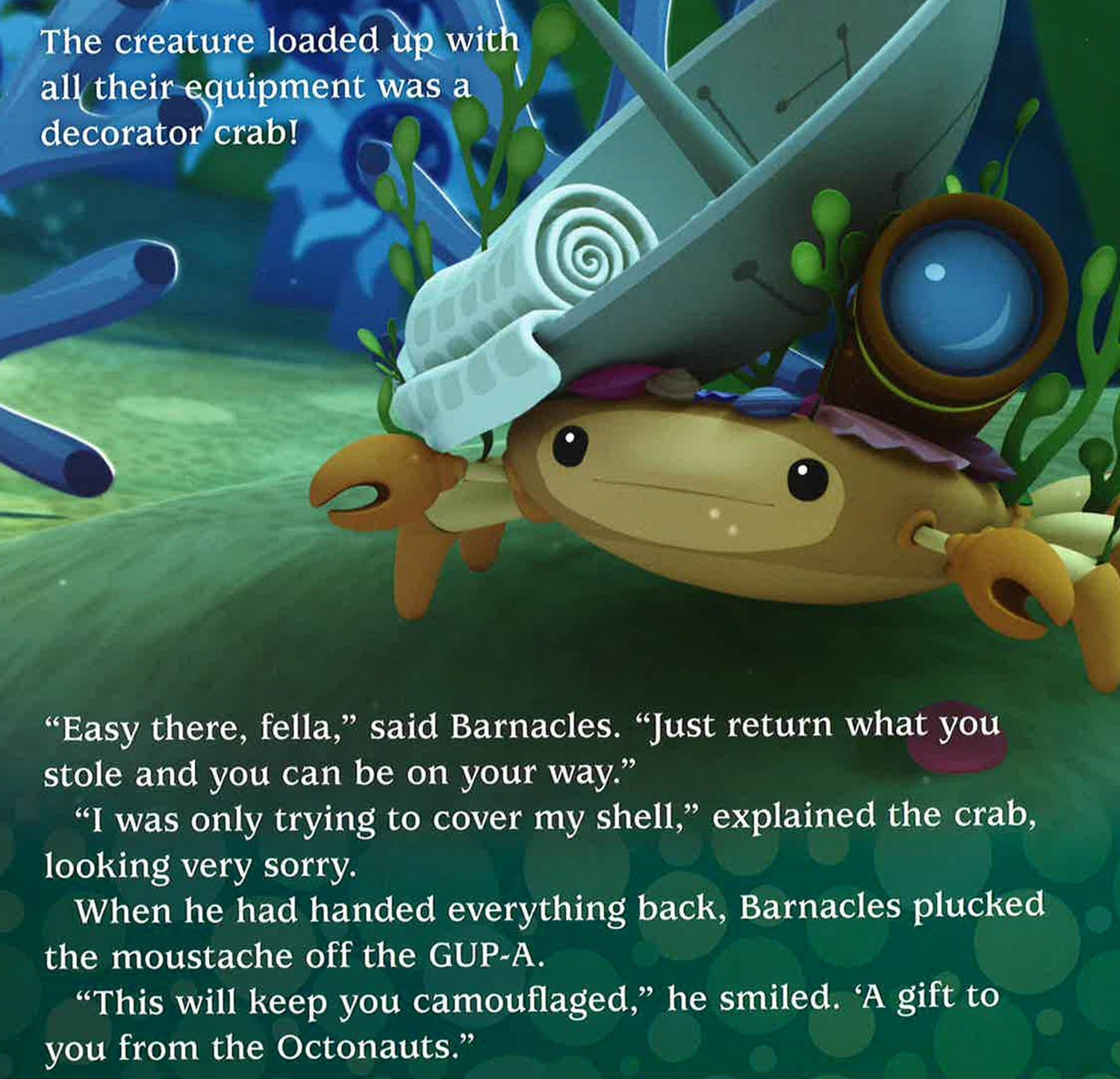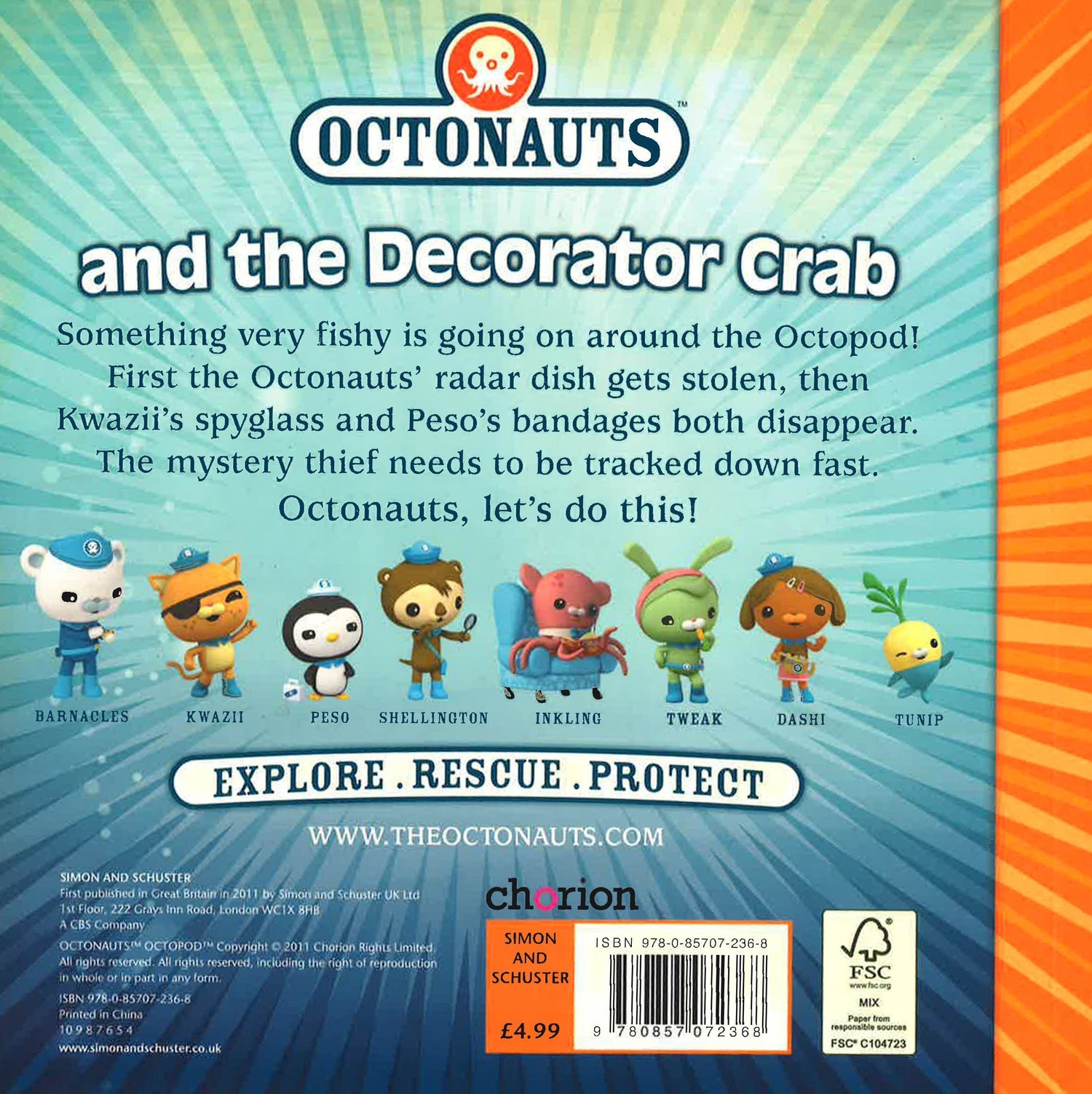 The Octonauts follows a team of adventure heroes who dive right into action whenever there is trouble under the sea. In a fleet of amazing aquatic vehicles, the Octonauts explore incredible new underwater worlds, rescue wonderful sea creatures, and often save the day before returning safely home to the Octopod. Under the leadership of Captain Barnacles Bear, closely flanked by Lieutenant Kwazii Cat and Medic Peso Penguin, the Octonauts are always ready to embark on an exciting new mission! The Octonauts and the Decorator Crab When an important object goes missing from their ship, the Octonauts decide stake out the thief. There's lots of tension and a whodunnit feel as more and more pieces of Octokit go missing! The unlikely culprit is finally exposed as a decorator crab, salvaging the crew's things to cover his shell.