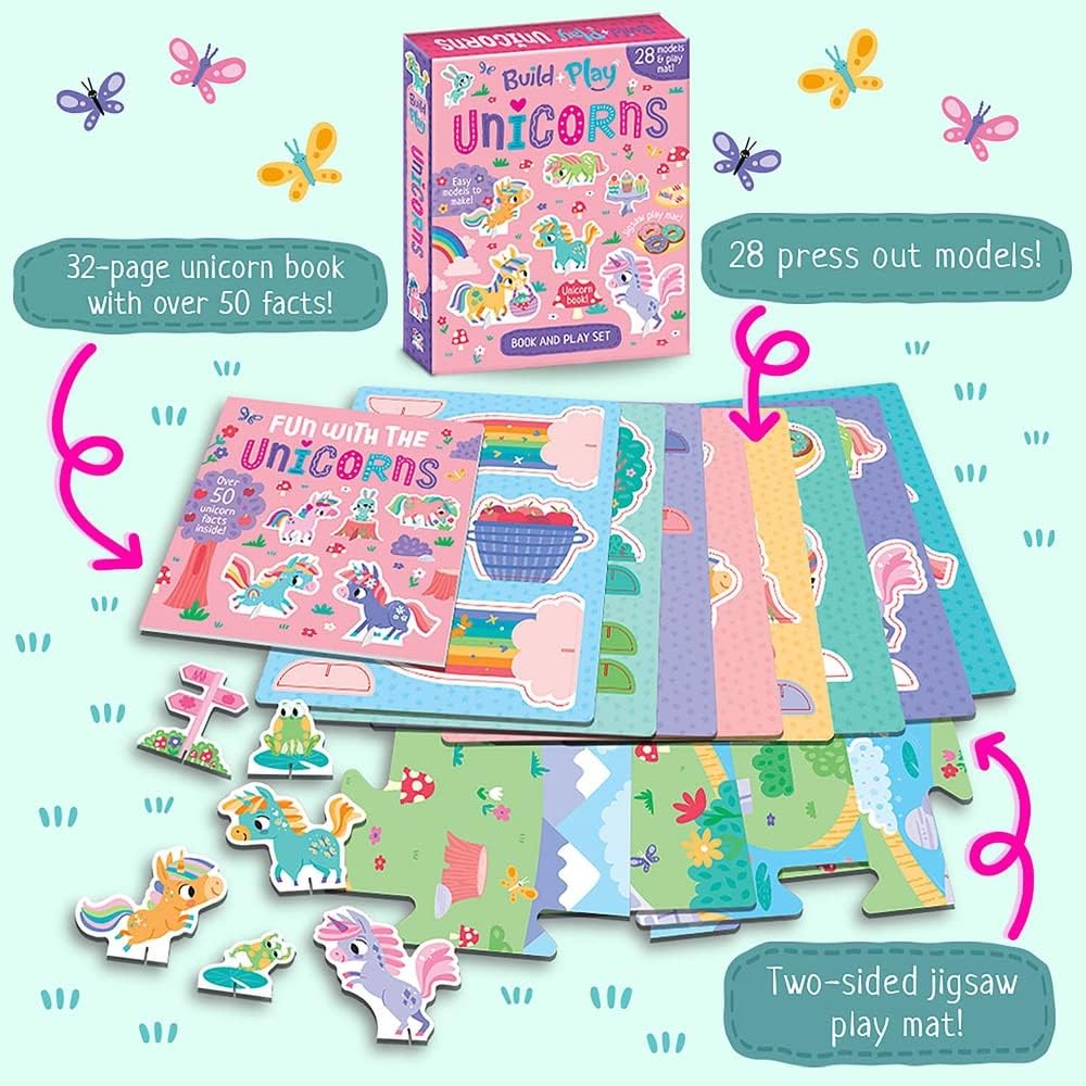 The perfect way to fire up little imaginations, this kit contains 28 sturdy cardboard models that are super-easy for young children to slot together on their own to make a fantastic unicorns play set. From prancing unicorns and playful unicorns to a beautiful rainbow for galloping through, there's lots to make and play with straight away, including a simple two-sided jigsaw play mat that fits neatly together. Plus, there's a 32-page fun unicorn facts book featuring all the models from the kit and over 50 magical facts to discover, learn and inspire creative play.
