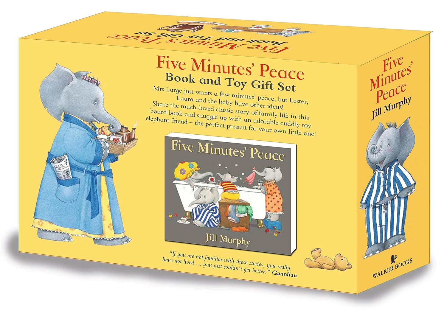 Snuggle up with this gorgeous gift box of the classic story board book Five Minutes' Peace and an adorable soft toy.