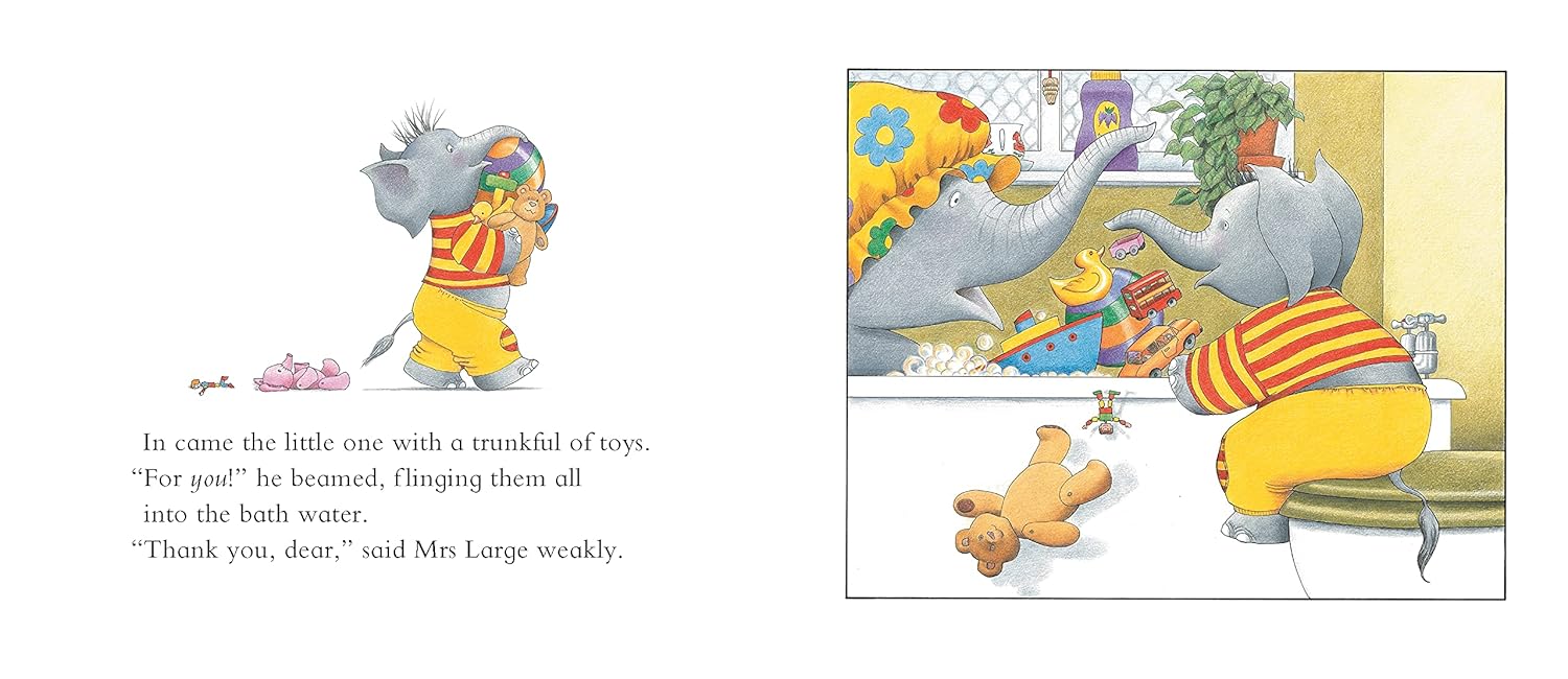 All Mrs Large wants is five minutes' peace and quiet away from her boisterous children! So, taking refuge in the bathroom, she fills herself a hot, foamy bubble bath and takes in a tray of her favourite breakfast and the morning paper. But there’s never a dull moment with the Large family, and it soon becomes clear that mum's quiet time is to be very short-lived!
