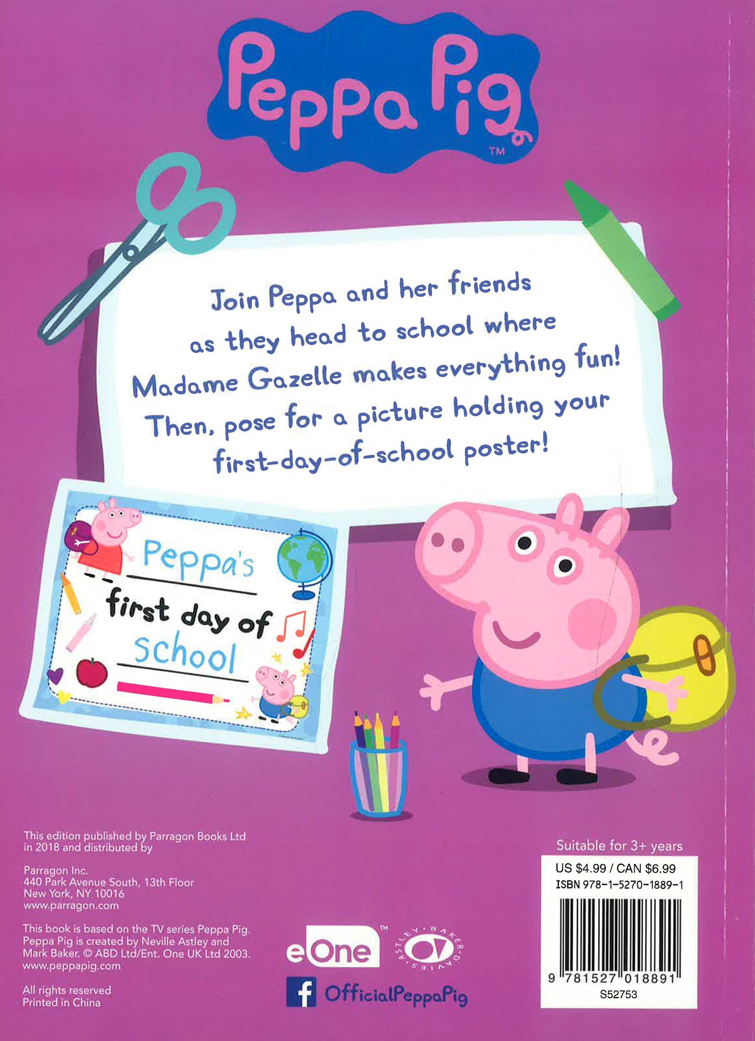 Join Peppa and her friends for 48 pages of school-themed activities and hours of fun! Then, pose for a picture with the included first-day-of-school poster to make it memorable!