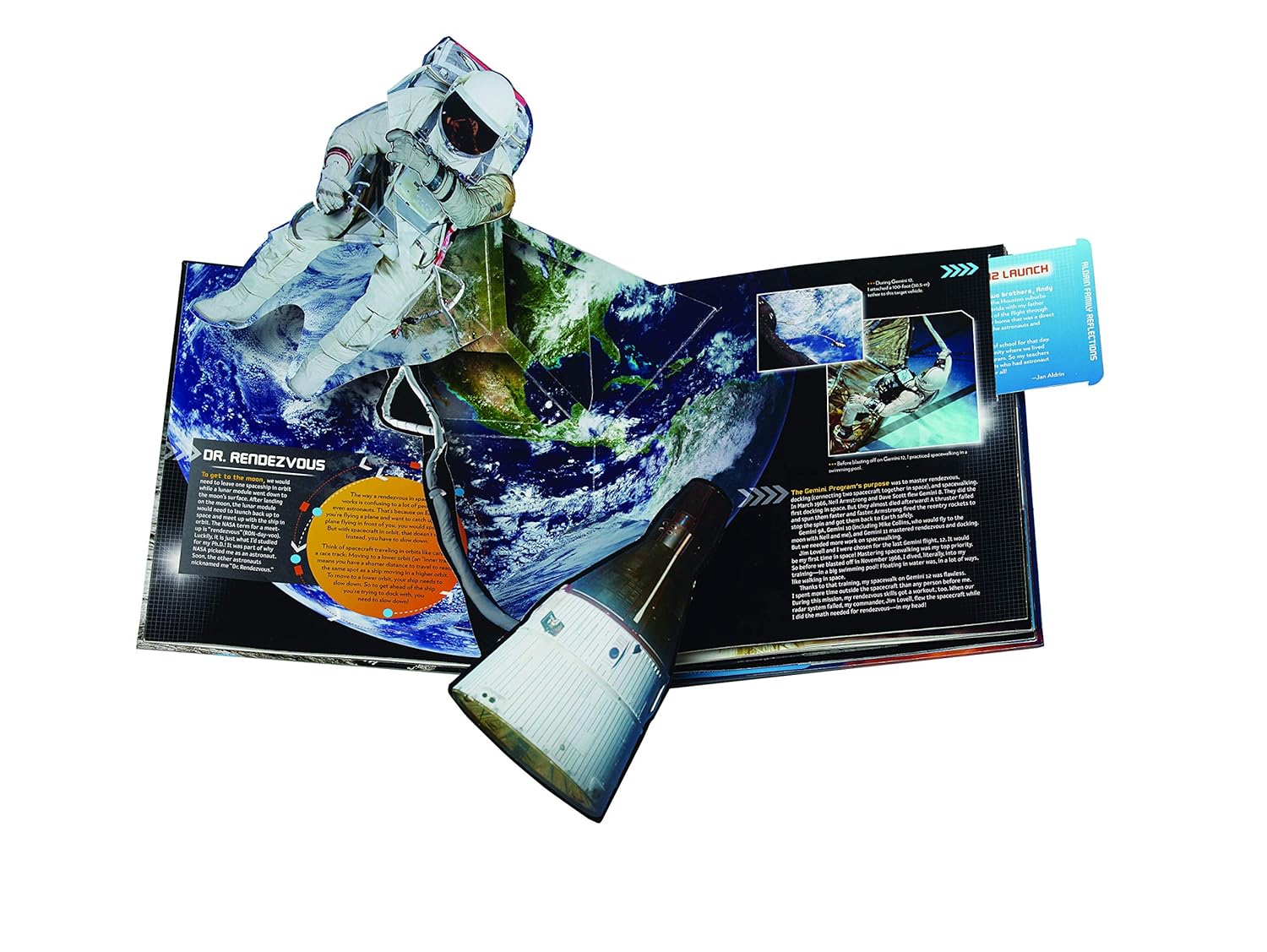 Paper engineer Bruce Foster brings to life what it was like to blast off into space and take the first steps on the moon through intricate pop-ups and paper folds.