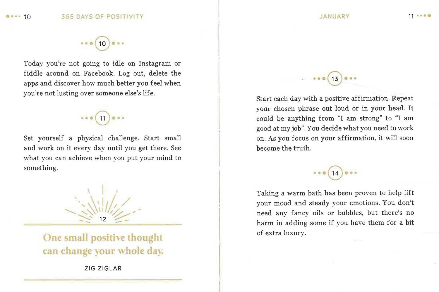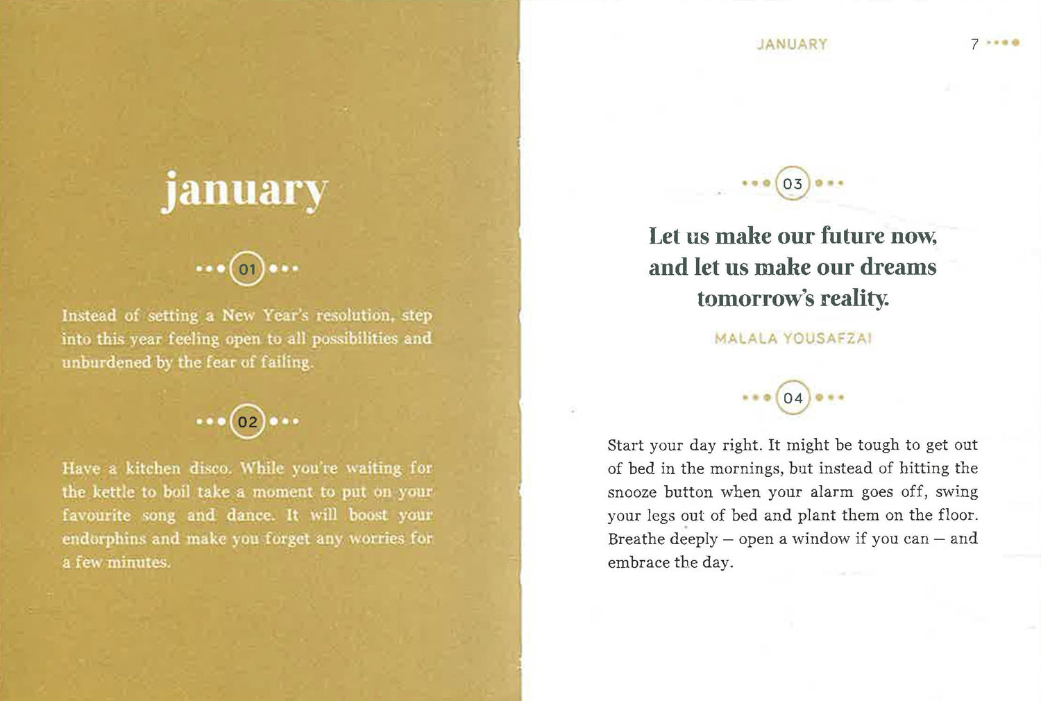 Find inspiration and motivation every day with this pocket-sized little book full of great ideas and simple tips that will bring joy, happiness and positivity to your life. For use all year round, the book is packed with 365 suggestions to help turn that frown upside down. In addition the collection is punctuated with inspirational and uplifting quotations to bring a smile to your face.