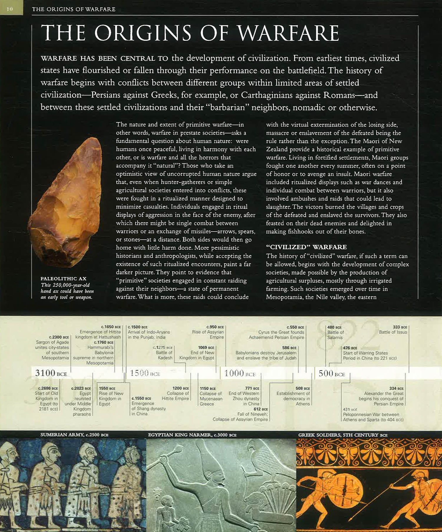 DK's Battle draws together, for the first time, the many facets of battle — the glory and the gore, the attrition and atrocity — in a new and original way. Organized chronologically, Battle provides a detailed overview of the conduct of warfare through the centuries, from the first recorded battle at Megiddo between the massed ranks of Hittites and Egyptians, to the war of the missing Weapons of Mass Destruction. In each era, the technology that transformed the battlefield and the tactics that won the day are explored and explained. Battle is an indispensable reference to this most fundamental part of the human story.
